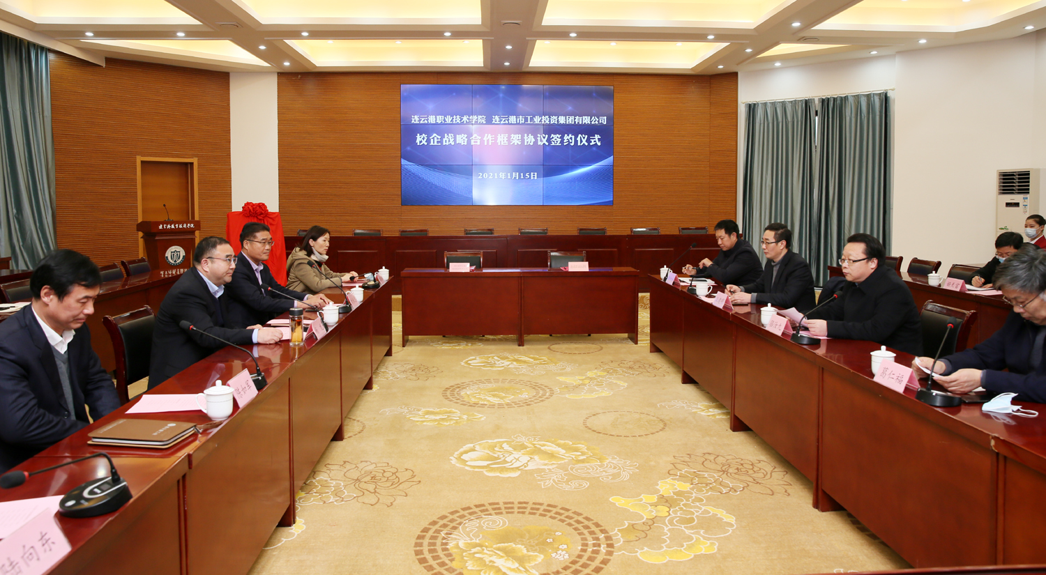 為深入推進(jìn)產(chǎn)業(yè)工人隊(duì)伍建設(shè)改革,搭建職工教育培訓(xùn)平臺(tái),1月15日,在連云港職業(yè)技術(shù)學(xué)院舉行校企合作簽約儀式,并為集團(tuán)公司職工培訓(xùn)中心揭牌。集團(tuán)公司黨委書記、董事長(zhǎng)楊龍,工會(huì)主席劉承志,總經(jīng)濟(jì)師陳如軍;連云港職業(yè)技術(shù)學(xué)院黨委副書記、校長(zhǎng)駱汝九,副校長(zhǎng)葛仁福、汪建明等領(lǐng)導(dǎo)出席活動(dòng)。 駱汝九致歡迎辭,表示通過合作辦學(xué)、合作育人、合作發(fā)展,構(gòu)建優(yōu)勢(shì)互補(bǔ)、資源共享、互惠雙贏、共同發(fā)展的新格局,推動(dòng)高等職業(yè)教育與經(jīng)濟(jì)社會(huì)同步發(fā)展,全面開啟校企戰(zhàn)略合作的美好未來。