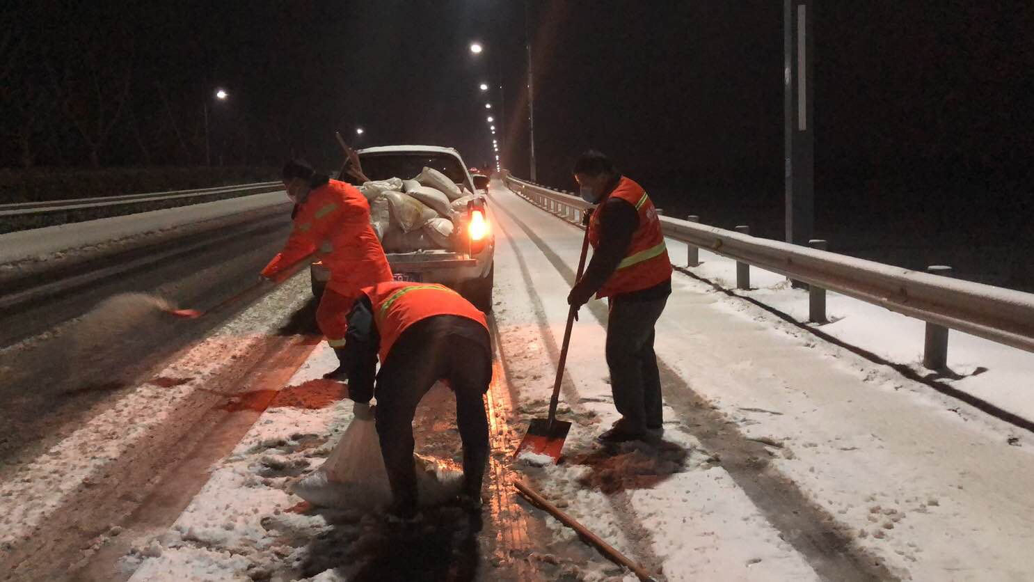 在開發(fā)區(qū)、徐圩新區(qū)、灌云臨港產(chǎn)業(yè)區(qū)的各個(gè)區(qū)域,到處都是集團(tuán)綠化保潔人的最美身影,他們?cè)诟鲉挝稽h員先鋒隊(duì)、青年突擊隊(duì)的配合下,帶上融雪劑和作業(yè)工具,發(fā)揚(yáng)不怕艱苦、連續(xù)作戰(zhàn)、敢打敢拼的工投精神,對(duì)交通要道、橋梁、彎道等重點(diǎn)防滑路段進(jìn)行清雪防凍處理,鋪灑融雪劑40余噸,為疫情防控期間車輛行人出行安全增添一份保障。