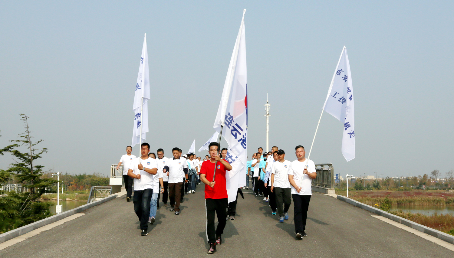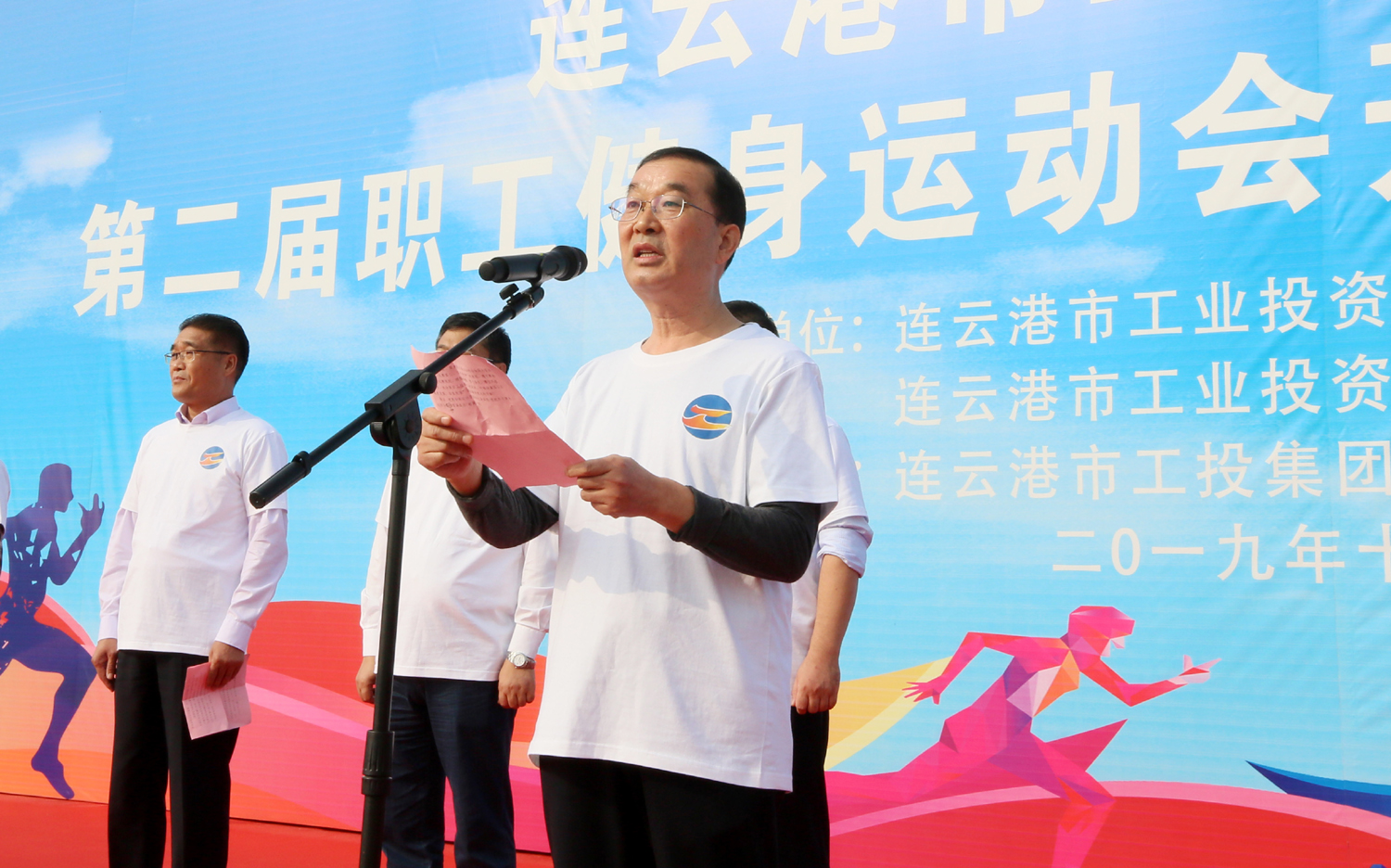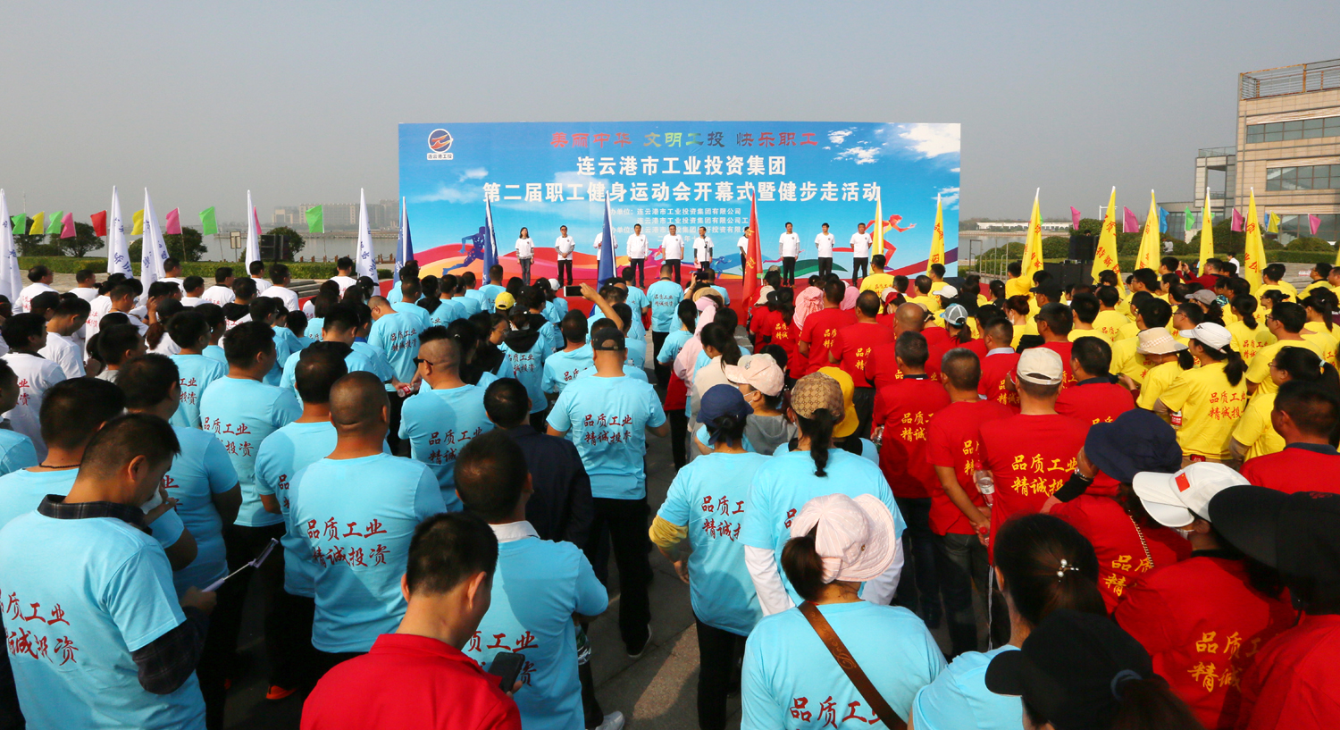 金秋十月,丹桂飄香。10月24日上午,美麗的徐圩新區(qū)云湖廣場彩旗招展,歌聲飛揚,為慶祝中華人民共和國成立70周年,豐富職工業(yè)余文化生活,由集團公司、集團公司工會主辦,徐圩投資公司承辦的集團第二屆職工健身運動會開幕式暨健步走活動在這里隆重舉行。集團公司黨委書記、董事長楊龍宣布第二屆職工健身運動會開幕,并為健步走活動發(fā)令。總經理胡建明致開幕詞。工會主席劉承志主持開幕式。 本次運動會圍繞“美麗中華·文明工投·快樂職工”活動主題,來自全公司各條戰(zhàn)線的17支代表隊1200多人次的運動員參加拔河、跳繩、乒乓球、健步走等項目的角逐。他們以勇奪第一、超越自我的競賽精神和攜手奮進、合力拼搏的競賽風尚,充分展示工投人追求卓越、共建和諧的優(yōu)秀精神風貌。本次運動會將對個人單項比賽前六名、集體項目比賽前三名及道德風尚獎獲得者給予表彰。