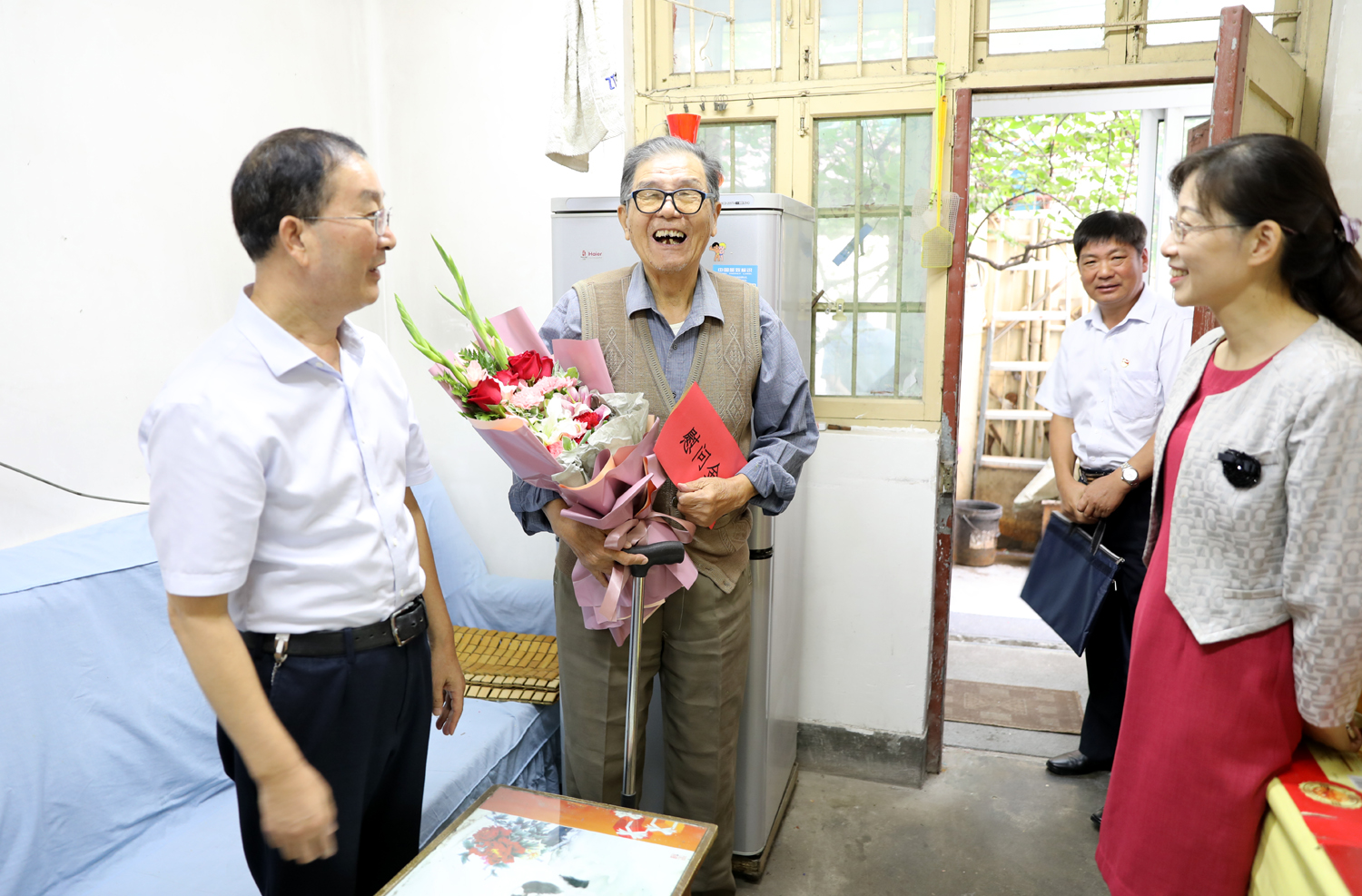 每到一處,集團(tuán)公司領(lǐng)導(dǎo)都與老人們拉家常,詳細(xì)詢問他們家庭生活情況和身體健康情況,介紹集團(tuán)公司發(fā)展情況,感謝老同志對新中國建設(shè)事業(yè)與集團(tuán)公司改革發(fā)展作出的重要貢獻(xiàn)。并指出,在新中國波瀾壯闊的革命建設(shè)歷程中,無數(shù)黨員前仆后繼作出了貢獻(xiàn)和犧牲。老黨員、老同志是我們的寶貴財(cái)富,要大力弘揚(yáng)老一輩的優(yōu)良傳統(tǒng),要帶著感情和責(zé)任做好服務(wù),從生活上、精神上更加關(guān)心、關(guān)愛他們,及時(shí)幫助解決生活中的困難和問題,讓老黨員老有所養(yǎng)、老有所樂。