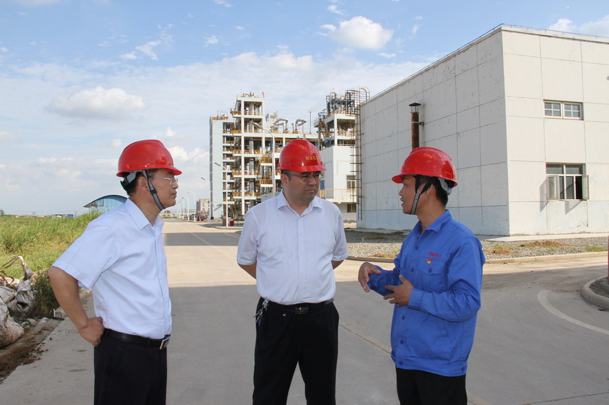楊龍一行先后查看了生產廠區(qū)各裝置運行情況、固廢庫暫存區(qū)、固廢暫存庫建設現場、廠內堿渣和鈦渣拋填試驗場地,了解氯化芐二期試生產、上下游廠家、外商貿易等情況。楊龍強調,要提高綠色發(fā)展意識,壓實各級責任,做好安全環(huán)保工作,并要以產品銷售、新項目開發(fā)、固廢綜合利用為抓手,全方位、多渠道拓展市場,為工投鹽化工產業(yè)發(fā)展夯實基礎。