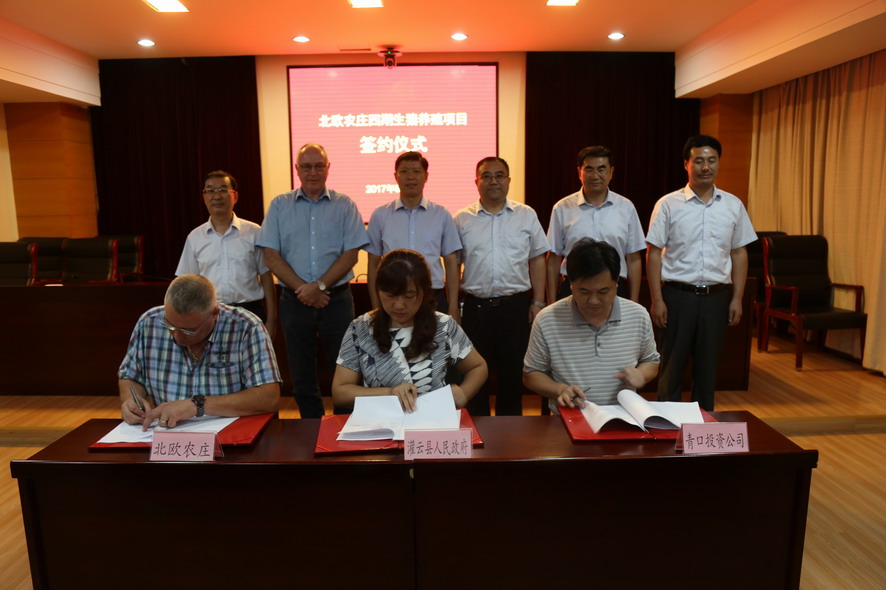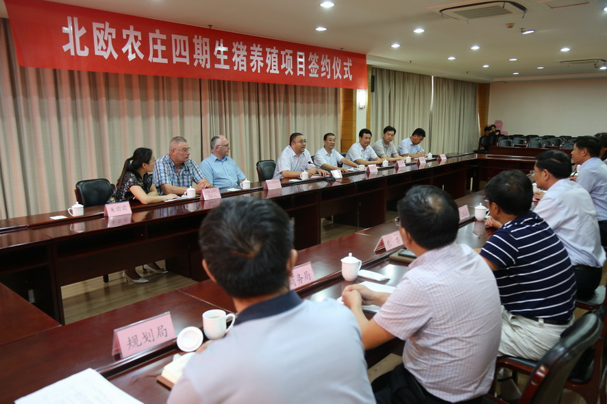 8月7日下午,北歐農(nóng)莊四期生豬養(yǎng)殖項目簽約儀式在灌云縣行政中心舉行。集團(tuán)公司領(lǐng)導(dǎo)楊龍、胡建明、陳如軍,灌云縣領(lǐng)導(dǎo)朱興波、王慶嘉、張凌云,丹育公司董事勞倫斯·桑德高,連云港北歐農(nóng)莊生豬養(yǎng)殖有限公司首席執(zhí)行官楊林柏等出席簽約儀式。
