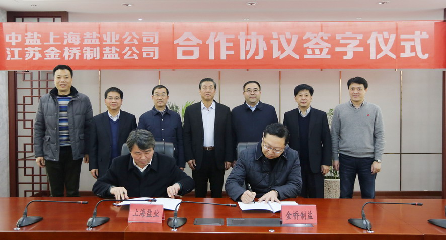 12月16日下午,金橋制鹽有限公司與中鹽上海鹽業(yè)公司舉行戰(zhàn)略合作協議簽約儀式,集團公司董事長、黨委書記楊龍,總經理胡建明、副總經理楊國新,上海鹽業(yè)公司總經理、上海市鹽務局局長王學仕,上海鹽業(yè)公司黨委副書記李光銳等出席簽約儀式。金橋制鹽公司董事長朱桂玉與上海鹽業(yè)公司總經理助理劉樹國代表雙方在協議上簽字。