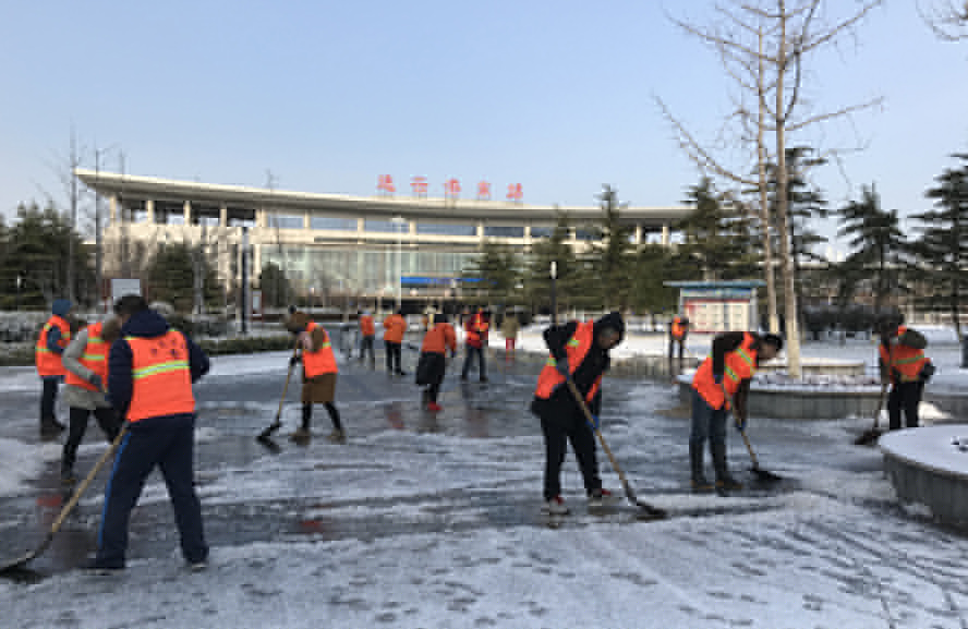 現(xiàn)值嚴(yán)寒時(shí)節(jié),積雪容易導(dǎo)致路面結(jié)冰,給上下班的交通和居民出行帶來嚴(yán)重影響,為確保人、車流高峰期間交通安全,華茂公司領(lǐng)導(dǎo)班子精心組織、緊密協(xié)調(diào),31日天一亮,公司領(lǐng)導(dǎo)班子分赴各基層單位坐陣指揮,廣大干部職工奮戰(zhàn)在清冰除雪一線,大家揮動(dòng)著雪鏟、鐵鍬、掃把等清雪工具除冰掃雪,對(duì)交通壓力較小的路段采用人工堆積清理和車輛集中清運(yùn)相結(jié)合的方式進(jìn)行掃雪;對(duì)交通壓力較大的路段運(yùn)用大型除雪機(jī)械進(jìn)行清雪作業(yè),為疏通交通提供保障。