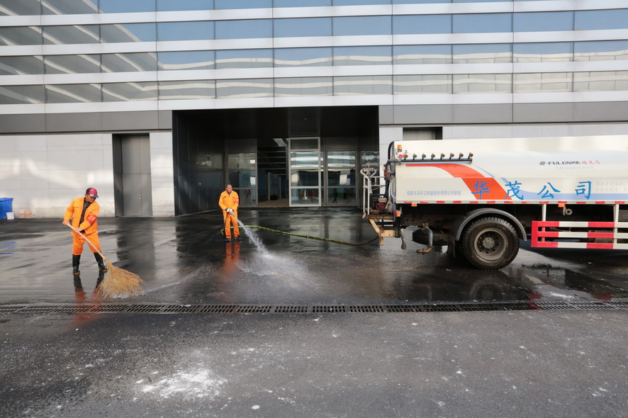 從10月29日以來,該公司啟動(dòng)預(yù)案,統(tǒng)籌策劃,組織安排人員,調(diào)度機(jī)械設(shè)備,分解任務(wù),明確責(zé)任時(shí)間節(jié)點(diǎn),有效使用創(chuàng)衛(wèi)成果,轉(zhuǎn)投到“連博會(huì)”環(huán)境整治工作中來。300多名職工不顧連續(xù)5個(gè)多月創(chuàng)衛(wèi)奮戰(zhàn)的疲倦和勞累,以飽滿激情、高昂斗志,加班加點(diǎn),奮戰(zhàn)在連博會(huì)環(huán)衛(wèi)整治工作“新戰(zhàn)場(chǎng)”。連日來,累計(jì)在展館周邊區(qū)域新植銀杏樹40余株、石楠樹30多株,更新草坪10000多平方米,美化環(huán)境,烘托氛圍。在展館廣場(chǎng)、附近干、支道路上,每天安排2臺(tái)大型洗掃車循環(huán)清掃沖洗和灑水降塵作業(yè),安排120多名環(huán)衛(wèi)人員撿拾動(dòng)態(tài)垃圾、清理布展施工垃圾雜物,提升展館周邊區(qū)域的場(chǎng)地路面整潔衛(wèi)生養(yǎng)護(hù)等級(jí)。連云港火車東站廣場(chǎng)新增加30名環(huán)衛(wèi)人員,對(duì)廣場(chǎng)的路面、橋欄、果皮箱、花壇、座椅等進(jìn)行多次清掃擦洗,撿拾清理清運(yùn)垃圾,并將車站廣場(chǎng)環(huán)衛(wèi)保潔下班時(shí)間由晚8點(diǎn)延長(zhǎng)到10點(diǎn),通過細(xì)致優(yōu)質(zhì)服務(wù),強(qiáng)化窗口衛(wèi)生環(huán)境,愉悅參展商和來客的心情。