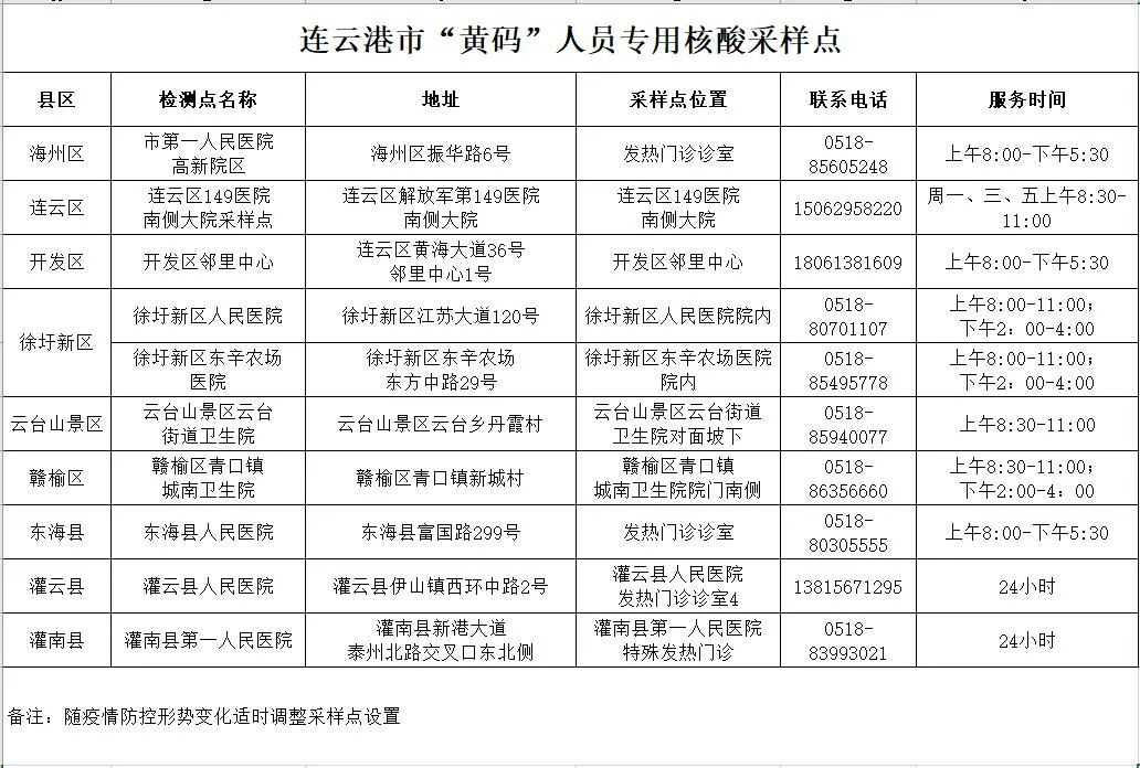 與確診病例或無癥狀感染者活動軌跡有時(shí)空伴隨人員。1. 賦“黃碼”人員,應(yīng)居家健康監(jiān)測7天,并到指定機(jī)構(gòu)進(jìn)行3次核酸檢測(第1、3、7天,每次間隔24小時(shí)),如果檢測結(jié)果均為陰性,統(tǒng)一轉(zhuǎn)為“綠碼”。符合轉(zhuǎn)碼條件未能自動轉(zhuǎn)碼的“黃碼”人員,憑相關(guān)證明向所在地社區(qū)(村)、街道(鄉(xiāng)鎮(zhèn))登記,并提出申請,由屬地縣(區(qū))疾控中心安排專人負(fù)責(zé)審核,并負(fù)責(zé)轉(zhuǎn)“綠碼”事宜。2. 如市民發(fā)現(xiàn)“黃碼”賦碼不準(zhǔn)確,可及時(shí)向所在社區(qū)(村)報(bào)告、登記,由社區(qū)(村)匯總至所在街道(鄉(xiāng)鎮(zhèn))后提供給屬地縣(區(qū))疾控中心進(jìn)行審核,并負(fù)責(zé)轉(zhuǎn)“綠碼”事宜。“黃碼”人員請主動向所在社區(qū)(村)登記,遵守相關(guān)防疫規(guī)定,到指定“黃碼”專用采樣點(diǎn)進(jìn)行核酸采樣檢測。全程嚴(yán)格做好個(gè)人防護(hù),不乘坐公共交通工具,與他人保持1米安全距離。請市民密切關(guān)注個(gè)人健康狀況,做到少出門、不串門、不扎堆、不聚集,出現(xiàn)發(fā)熱、咳嗽、乏力、腹瀉等新冠肺炎疑似癥狀第一時(shí)間報(bào)告。凡應(yīng)檢未檢造成疫情傳播的,依法追究責(zé)任。附件:連云港市“黃碼”人員專用核酸采樣點(diǎn)連云港市突發(fā)新冠肺炎疫情應(yīng)急處置指揮部辦公室 近日,我市發(fā)現(xiàn)新冠肺炎確診病例及無癥狀感染者。根據(jù)疫情精準(zhǔn)防控工作要求,為及時(shí)有效阻斷新冠肺炎疫情傳播,現(xiàn)將我市“蘇康碼”賦“黃碼”和轉(zhuǎn)碼管理相關(guān)事項(xiàng)通告如下: