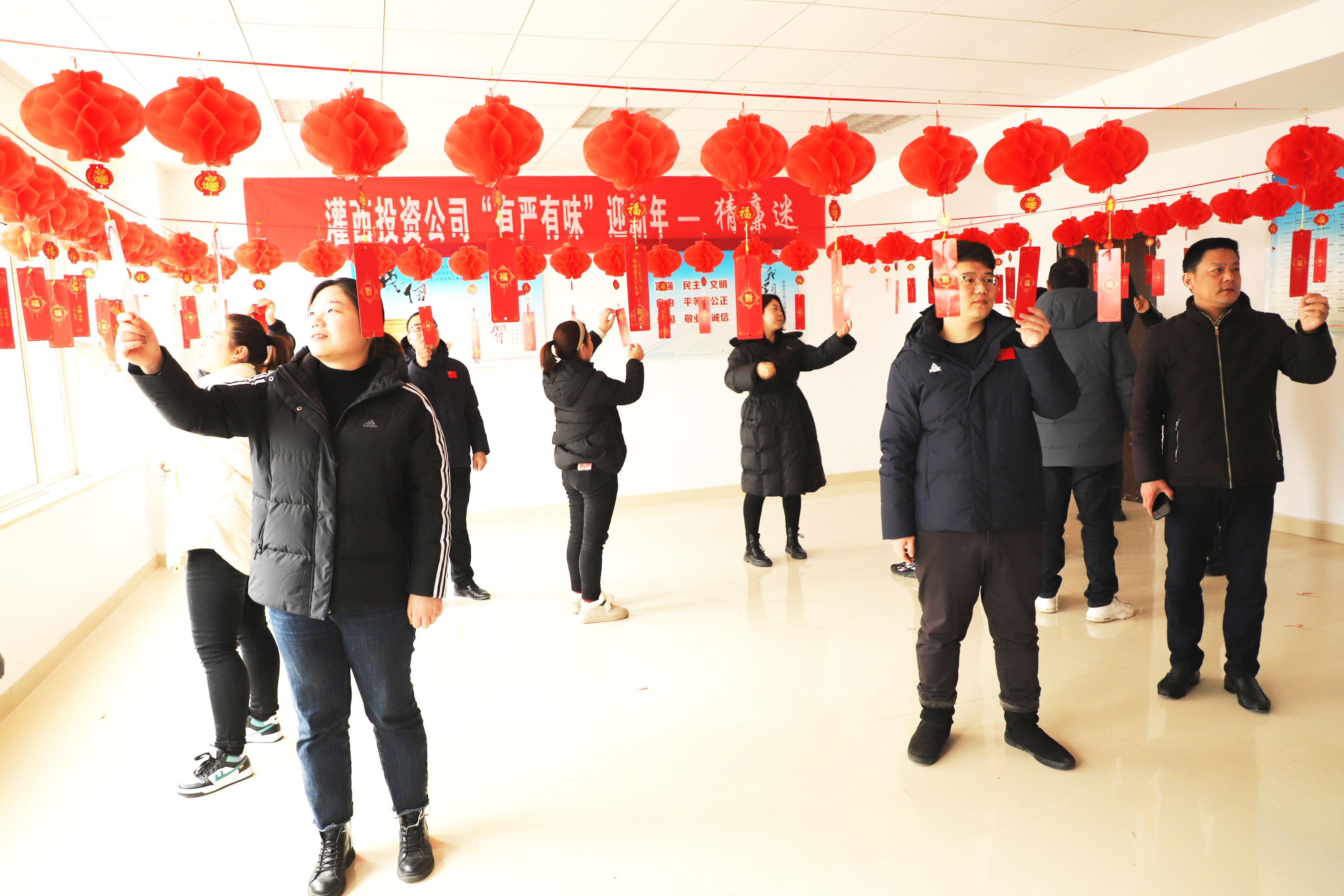 “樹我中華廉政風——打我國兩節(jié)氣?!薄胺锤Wゲ恍浮蛞恢袊孛??!?月26日,灌西公司辦公大樓廉政文化展廳內(nèi)紅紅的燈籠格外喜慶,近百條廉政燈謎依次懸掛,一場集知識性和趣味性于一體的廉政燈謎有獎競猜活動吸引了百余名員工聚集參與,大家一起開動腦筋,爭相“解密”。