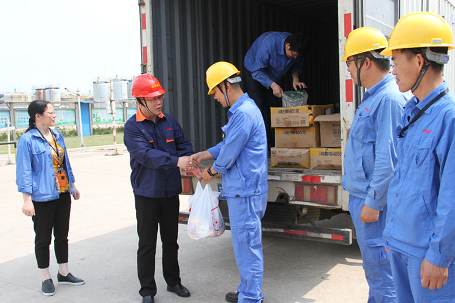 在做好高溫天氣下裝置安全生產(chǎn)的同時(shí),督促各生產(chǎn)崗位在高溫天氣合理安排工作時(shí)間,盡量避開一天中的高溫時(shí)段安排室外工作,防止中暑事件的發(fā)生;加強(qiáng)空調(diào)、通風(fēng)設(shè)備維護(hù),確保員工休息室空調(diào)、生產(chǎn)通風(fēng)設(shè)備正常運(yùn)轉(zhuǎn)。加強(qiáng)食堂衛(wèi)生管理,定期檢查職工食堂衛(wèi)生飯菜質(zhì)量,并根據(jù)天氣情況和職工實(shí)際需求及時(shí)調(diào)整飯菜口味,午餐為員工提供西瓜等降溫水果。在廠區(qū)餐廳、分控樓、氯化芐休息室3處設(shè)置防暑降溫飲品飲用點(diǎn),提供足夠的、符合衛(wèi)生要求的綠豆茶水。此外還為員工發(fā)放了綠豆、白糖、飲料、龍虎人丹、清涼油等防暑降溫用品和防蚊蟲防中暑藥品,為生產(chǎn)裝置安全平穩(wěn)運(yùn)行保駕護(hù)航。