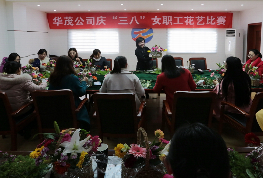 為慶?!叭恕眹H勞動婦女節(jié),營造熱烈的節(jié)日氛圍,3月6日下午,華茂綠化工程公司工會開展了女職工“花藝比賽”活動?;顒犹匮ㄋ嚴蠋煬F(xiàn)場授課,為女職工們講述了插花的種類和插花的原則。在聽取老師花藝講座后,女職工們開始了插花比賽。經(jīng)過老師點評,最終趙盼、趙宏媛、王芬分別獲得了本次比賽的前三名。