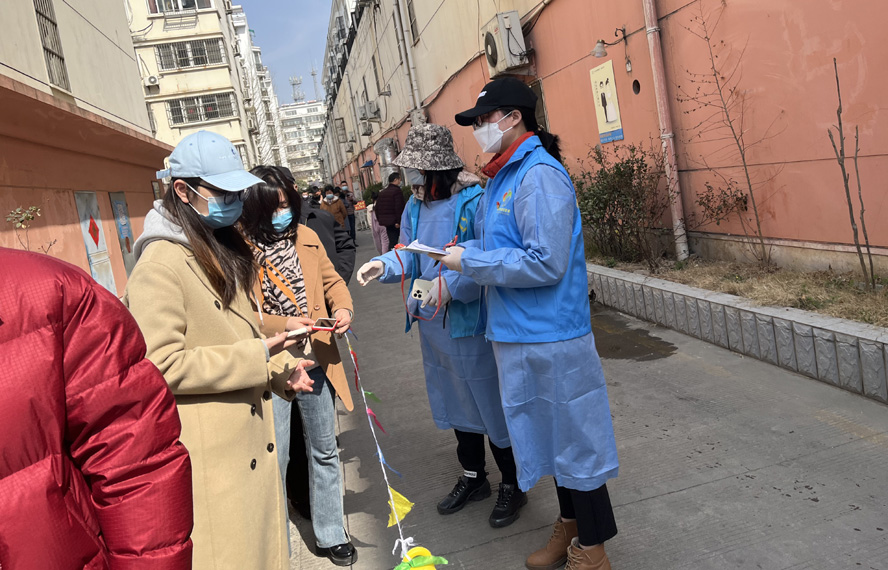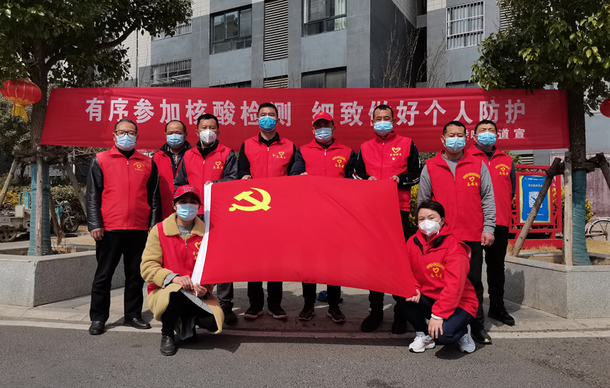 除了在崗員工,還有退休黨員秦英、孫芳等,在疫情發(fā)生前,他們是公司內(nèi)退黨員,在疫情爆發(fā)以后,他們是無所畏懼的抗疫戰(zhàn)士。隨著連云港開始第一輪全員核酸檢測,工作人員和志愿者都嚴(yán)重短缺,每天確診病例激增的數(shù)據(jù)都令人觸目驚心。當(dāng)看到招募志愿者的公告時,秦英熱血沸騰?!包h和人民需要我,我的家鄉(xiāng)需要我!”主動聯(lián)系海州區(qū)幸福路街道西大嶺社區(qū),在咨詢志愿者報名的同時,鄭重地并向社區(qū)遞交了一份疫情防控“請戰(zhàn)書”。