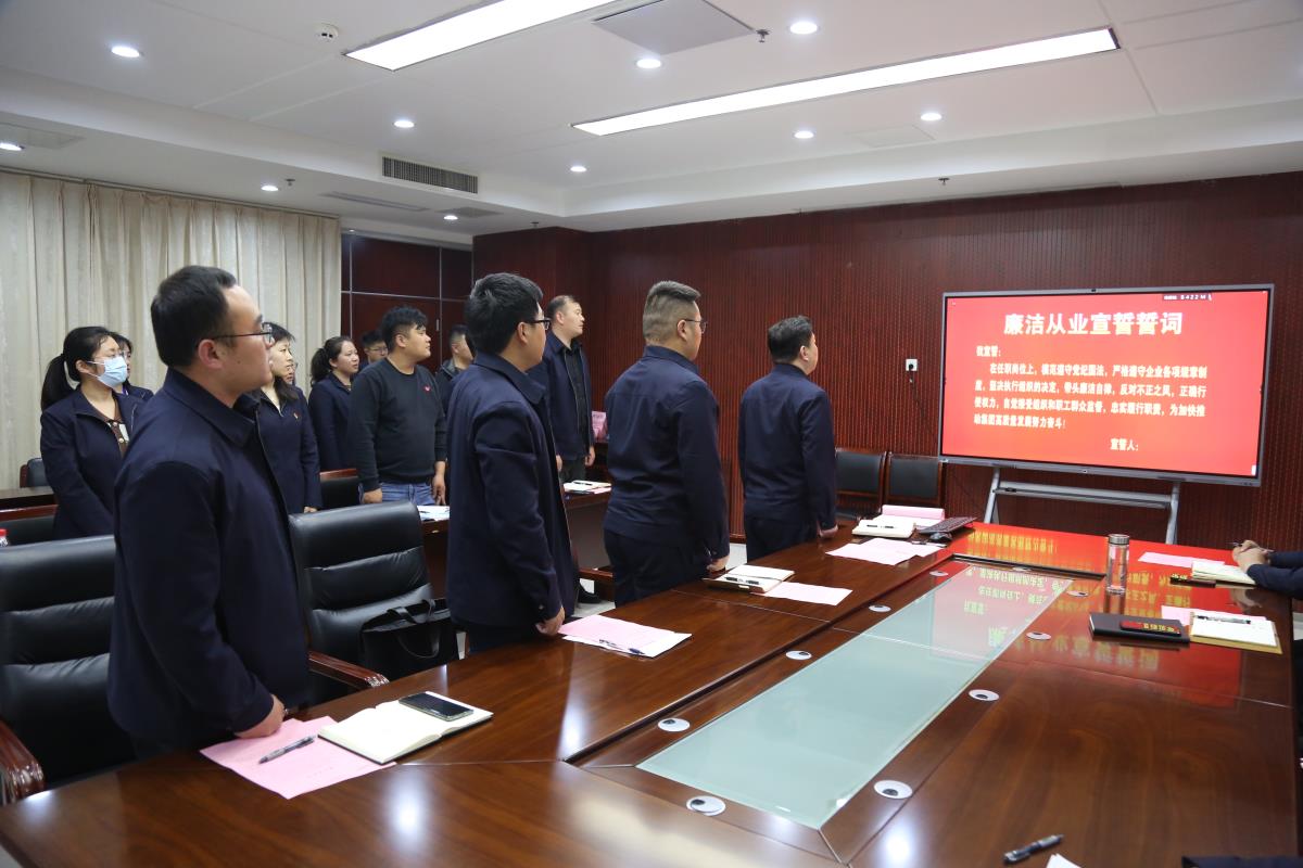 會上,90后年輕管理人員參加廉潔從業(yè)宣誓并遞交了個人廉潔承諾書。