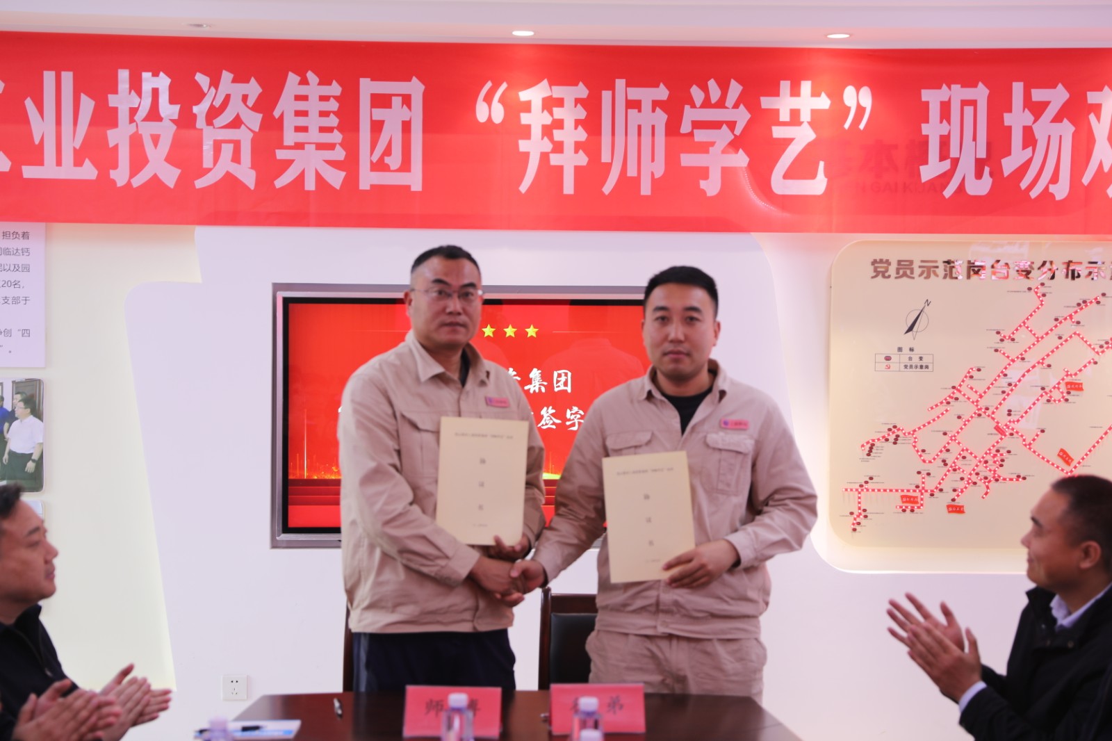 觀摩結(jié)束后,活動(dòng)進(jìn)入師徒代表交流環(huán)節(jié)。市勞模王建作為師傅代表率先發(fā)言,他結(jié)合自身帶徒經(jīng)歷,毫無(wú)保留地分享了培養(yǎng)新人的心得感悟。隨后,在全體與會(huì)人員的共同見證下,師徒雙方鄭重簽訂 "拜師學(xué)藝" 結(jié)對(duì)協(xié)議書,這一紙契約不僅是責(zé)任的傳遞,更是匠心的延續(xù)?;顒?dòng)現(xiàn)場(chǎng)還舉行了贈(zèng)書儀式,一本本凝聚著知識(shí)與經(jīng)驗(yàn)的書籍從師傅手中傳遞到徒弟手中,猶如一盞盞明燈,照亮了徒弟們的成長(zhǎng)之路。