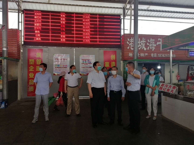 6月26日,連云港市政府副市長徐家保到巨龍農(nóng)貿(mào)市場檢查雙創(chuàng)和防疫工作,集團公司黨委副書記、總經(jīng)理胡建明,公司總經(jīng)理孫政權(quán)、副總經(jīng)理伏運余陪同檢查。