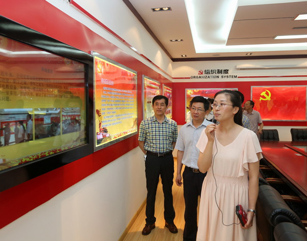 6月9日,市委新社工委召開(kāi)黨建工作觀摩匯報(bào)會(huì),市委組織部副部長(zhǎng)、市委黨建辦主任陳軍帶領(lǐng)觀摩團(tuán),在集團(tuán)公司領(lǐng)導(dǎo)鄭宜虎的陪同下,到我公司黨建活動(dòng)室觀摩。