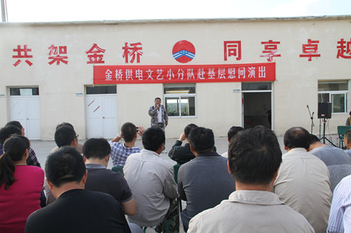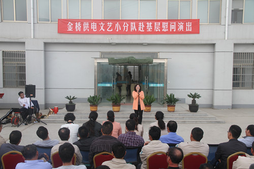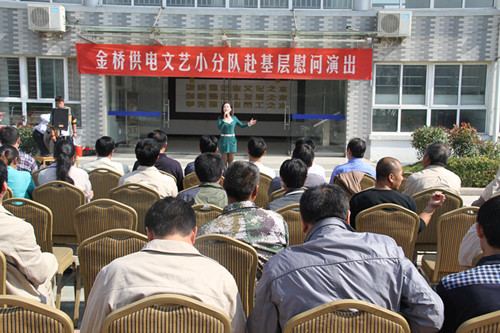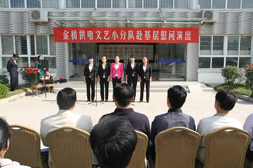 近日,為慶祝建國(guó)65周年,進(jìn)一步踐行黨的群眾路線,豐富基層職工文化生活,公司工會(huì)組織文藝小分隊(duì)深入供電所等基層單位巡回慰問(wèn)演出,為一線職工送去精彩紛呈的“文化大餐”,贏得了基層職工群眾一致好評(píng)。 在臨時(shí)搭建的舞臺(tái)上,文藝小分隊(duì)自編自演的的歌舞、相聲、詩(shī)朗誦、器樂彈唱等豐富多彩的節(jié)目,貼近基層,貼近生活,謳歌金橋供電十年成就,展示金橋供電職工風(fēng)采,贏得了現(xiàn)場(chǎng)觀眾陣陣掌聲。中間還穿插了擊鼓傳花觀眾互動(dòng)節(jié)目,基層職工踴躍參與,氣氛活躍。最后,演出在會(huì)場(chǎng)全體人員齊唱《歌唱祖國(guó)》中圓滿落下帷幕。 公司自成立以來(lái),一直注重企業(yè)文化建設(shè),利用多種形式活躍基層文化生活,滿足員工多層次、多角度的精神需求。不僅加強(qiáng)基層單位“職工小家”建設(shè),建立了“職工書屋”、職工活動(dòng)室、乒乓球室、羽毛球活動(dòng)場(chǎng)地等基礎(chǔ)設(shè)施,還舉辦了職工運(yùn)動(dòng)會(huì)、籃球賽和文藝演出等活動(dòng)。不僅發(fā)揮傳統(tǒng)職工文化活動(dòng)的優(yōu)勢(shì),而且還創(chuàng)新具有時(shí)代特色文化活動(dòng)的形式,不斷增強(qiáng)員工的凝聚力和向心力。通過(guò)本次深入基層慰問(wèn)演出,不僅為戰(zhàn)斗在一線的基層職工獻(xiàn)上一份精神“大餐”,同時(shí)也展示了金橋供電的良好作風(fēng)和企業(yè)形象。(趙艷)