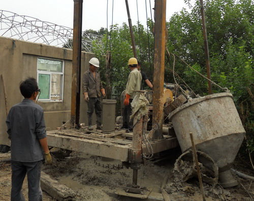 圖為管港變電所增容改造工程的鐵塔塔基灌砼施工現場