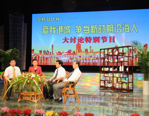 在節(jié)目現(xiàn)場(chǎng), 顧永庚董事長(zhǎng)首先為大家展示了集團(tuán)公司化工和加工鹽等各種特色產(chǎn)品。其后,顧永庚董事長(zhǎng)介紹了集團(tuán)公司在江蘇沿海開發(fā)戰(zhàn)略實(shí)施兩年來(lái)所取得的輝煌成就,圍繞沿海開發(fā)過(guò)程中金橋鹽化具有的獨(dú)特區(qū)域和資源優(yōu)勢(shì)、“十二五”發(fā)展目標(biāo)定位、“創(chuàng)建名牌企業(yè),共架幸福金橋”的奮斗目標(biāo)等方面與嘉賓、觀眾進(jìn)行了深入探討。