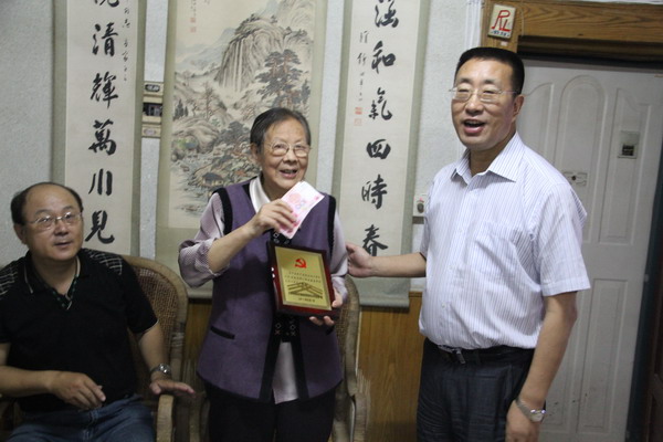 為慶祝中國(guó)共產(chǎn)黨90周年華誕,公司領(lǐng)導(dǎo)走訪、慰問(wèn)了部分建國(guó)前老黨員,共話(huà)崢嶸歲月;并向他們送上慰問(wèn)金和七一紀(jì)念牌,帶去組織上對(duì)老黨員們的關(guān)心和問(wèn)候。老黨員梁素華同志激動(dòng)之情溢于言表,動(dòng)情地說(shuō):“感謝領(lǐng)導(dǎo)關(guān)懷,感謝黨的恩情……”(司宣)