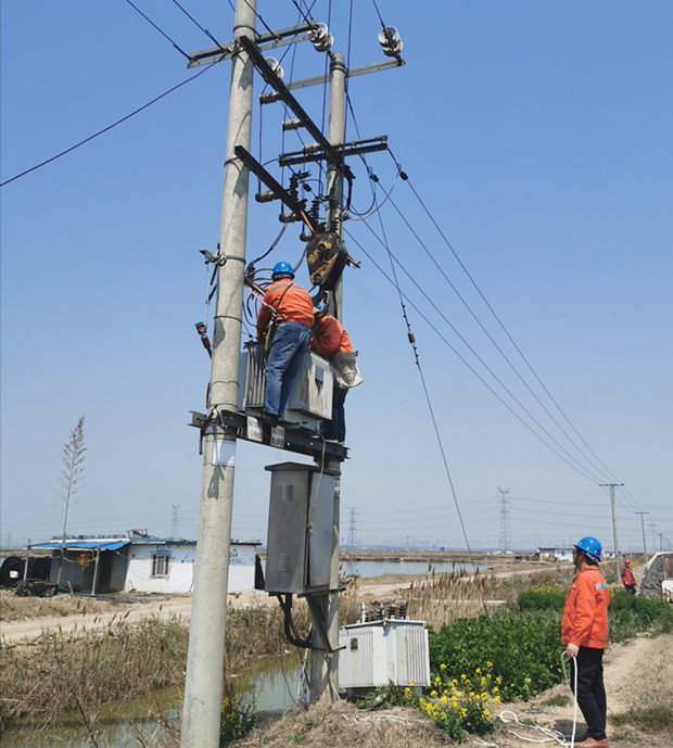 近年來,淡水養(yǎng)殖不斷擴(kuò)大高密度養(yǎng)殖規(guī)模,充氧設(shè)備逐漸增加,夏季高溫臺變用電負(fù)荷大增,養(yǎng)殖區(qū)部分變壓器不堪重負(fù)。為了保障廣大養(yǎng)殖用戶生產(chǎn)生活用電,確保供電設(shè)備經(jīng)得起高溫負(fù)荷的“烤”驗(yàn)。當(dāng)天上午八點(diǎn)半,在辦理好相關(guān)停電手續(xù),停電、驗(yàn)電、安裝接地線、安全交底等各項(xiàng)準(zhǔn)備工作的基礎(chǔ)上,在組長余榮欣的統(tǒng)一指揮下全組人員克服困難開始拆除舊變壓器,吊離變壓器,安裝新變壓器……經(jīng)過近5個小時奮戰(zhàn),順利完成2處變壓器更換安裝工作任務(wù),提前做好迎峰度夏“保衛(wèi)”工作。