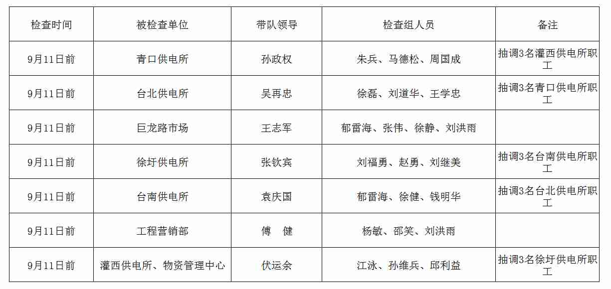 公司2019年雙節(jié)前(中秋、國(guó)慶)安全大檢查日程安排