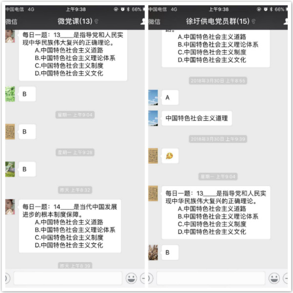 為促進(jìn)黨員更好的了解十九大精神,切實(shí)做到學(xué)懂弄通做實(shí),公司黨委充分發(fā)揮微信網(wǎng)絡(luò)平臺(tái)靈活便捷、互動(dòng)性強(qiáng)的優(yōu)勢(shì),開(kāi)展了“微考堂”“每日一題”學(xué)習(xí)活動(dòng)。公司黨群工作部每日通過(guò)微信群出題,大家搶答。題目緊扣十九大會(huì)議精神、習(xí)總書(shū)記講話精神、新黨章等重點(diǎn)內(nèi)容,并定期組織黨員開(kāi)展網(wǎng)絡(luò)答題考核,確保黨員真學(xué)真做。(電宣)