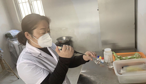 “疫情期間,每天都要隨機選取攤位進行取樣,對蔬菜、水果、生鮮肉類、干制品等的農藥殘留、非法添加物、濫用添加劑等進行檢測,檢測項目涵蓋常見的食用農產品風險項目,俗話說民以食為天,所以一定把好群眾的‘入口’關,讓居民吃得放心,這樣我的工作才有價值?!币咔榉揽孛钕逻_后,陸麗麗同志被巨龍農貿市場服務中心安排負責市場內的農產品檢測工作,她放棄春節(jié)節(jié)假日休息,即刻上陣,每日對市場攤位農產品進行抽檢,全力把好入市食用農產品質量關,維護銷售環(huán)節(jié)食用農產品消費安全。