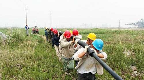 16日上午6點(diǎn)鐘左右,該所集合全部力量趕赴縱4路工程現(xiàn)場(chǎng)。在施工過(guò)程中,由于電纜線外套波紋管工作無(wú)法用機(jī)械完成,只能人工作業(yè)。該所除登高和外派作業(yè)人員外,其余人員密切配合,通力協(xié)作。他們不分工種、不計(jì)得失、不遺余力,喊著口號(hào)、邁著步子,用肩膀抗著波紋管,一步一個(gè)腳印,終于在中午12點(diǎn)成功將150米電纜套上波紋管。結(jié)束后才發(fā)現(xiàn)很多人的肩膀都磨出了淤血。為了搶在市網(wǎng)送電之前完成線路改造,該所在中午1點(diǎn)左右繼續(xù)趕工,最終在3點(diǎn)前將線路鋪設(shè)到位。(張偉孫維兵)