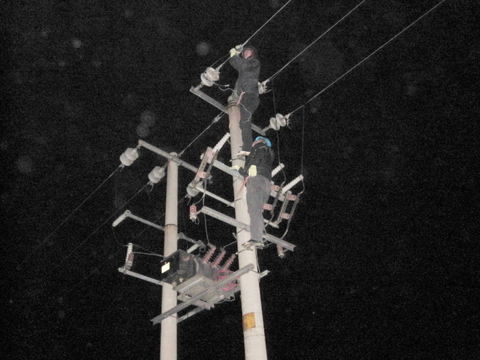時(shí)下正是養(yǎng)殖揚(yáng)水高峰期。3月6日晚20:37分,值班人員接到用戶電話反映:黃下線電壓不穩(wěn),變壓器及配電箱聲音異常,并發(fā)現(xiàn)高壓線路有火光現(xiàn)象,值班人員趙勇及時(shí)到現(xiàn)場。經(jīng)查看,是黃下線26號桿柱上斷路器,A相銅鋁樁頭養(yǎng)化接融不良所致。原因找到后,從21:05分組織人員進(jìn)行搶修,搶修人員克服夜間天黑等諸多困難,21:56分及時(shí)恢復(fù)供電,保證了養(yǎng)殖搶水。(宋中文 李衛(wèi)田)