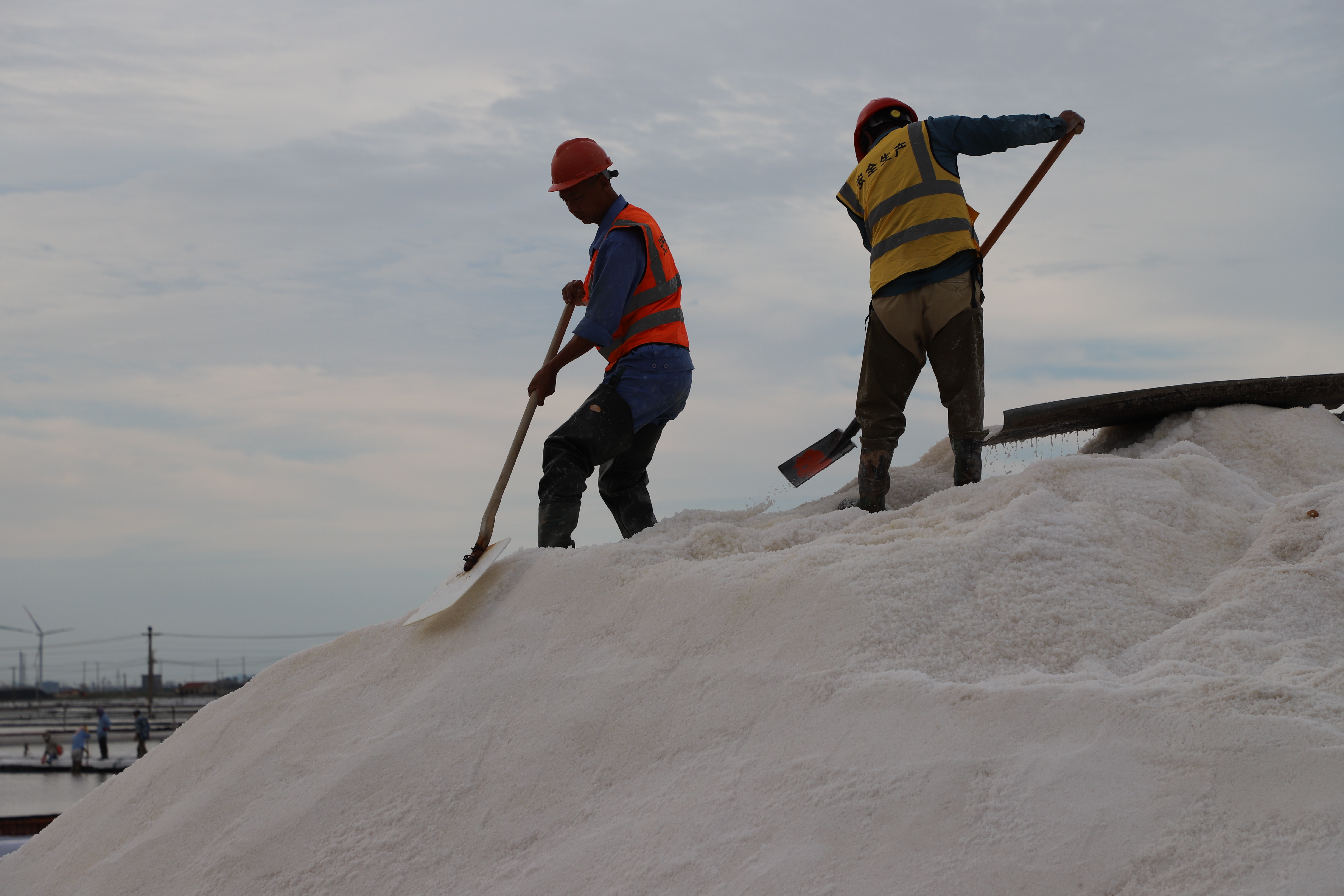 原鹽生產不松勁。每年的國慶假期總是與“秋扒”不期而遇。由于受連續(xù)的陰雨天氣影響,今年的秋扒工作一度延后。9月29日--9月30日,凌晨5點鐘,日曬鹽田的鹽圩小路像往常一樣成了一道最美的風景線,鹽工們全副武裝奔赴各自工作點位進行收拉塑布、排淡等工作。為了搶時間,抓進度,鹽工們緊鑼密鼓地忙碌起來,籌備扒鹽工作,天氣剛轉好,只見有的在整理塑布,有的破碴,10月2日,10臺扒鹽機組全部運轉起來,潔白的鹽廩逐漸擴大,節(jié)日期間將扒鹽30000余噸。