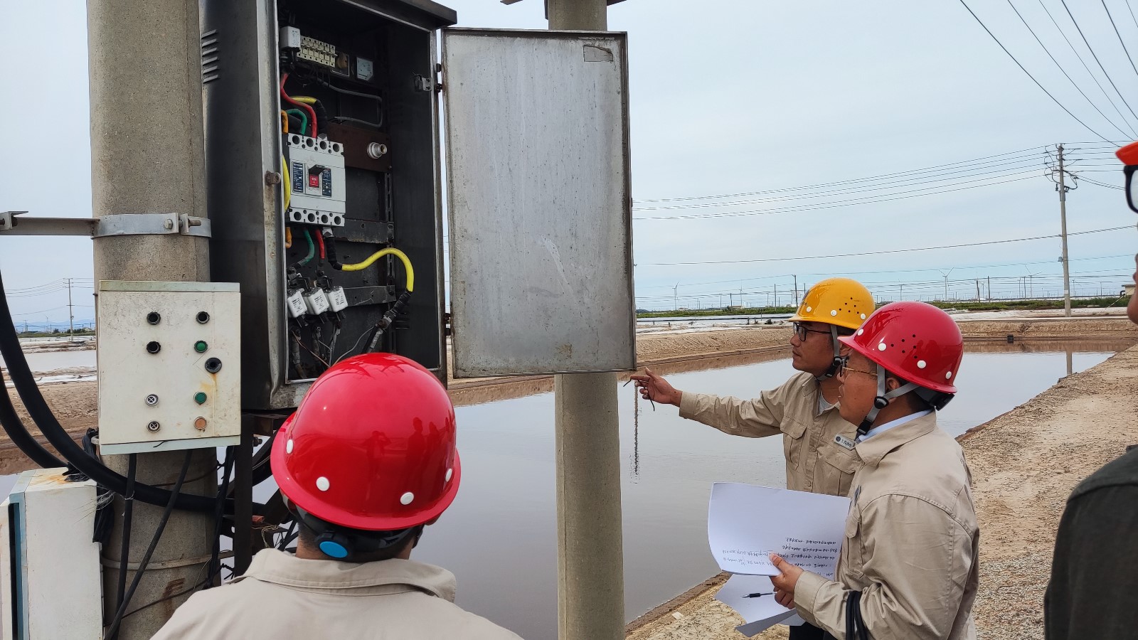 9月27日,“戰(zhàn)斗”正式打響,投資公司聯(lián)合供電公司開展日曬制鹽用電線路專項檢查,本次檢查組成員主要由投資公司和供電公司領(lǐng)導(dǎo)牽頭,安全部門和電力專家組配合組成;并分成兩組對已“服役”13年的日曬制鹽線路進(jìn)行全面體檢,針對檢查中存在的用電設(shè)施隱患及用電安全問題,予以記錄并及時落實整改;確保電路設(shè)備安全穩(wěn)定的運(yùn)行。