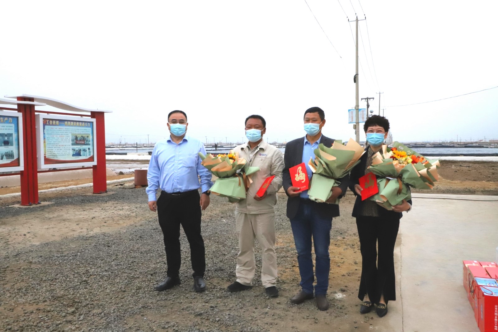4月25日上午,楊龍董事長(zhǎng)一行帶著鮮花和慰問(wèn),來(lái)到日曬制鹽新河制鹽分公司八班看望了灌西勞模代表王緒華、祝星星、王宏,與他們親切交談,聊家常、問(wèn)冷暖,將黨的關(guān)懷、工會(huì)的問(wèn)候送到他們手中、心中。與此同時(shí),楊龍還慰問(wèn)了八班全體員工,給他們送來(lái)餅干、八寶粥、飲用水等慰問(wèn)品。