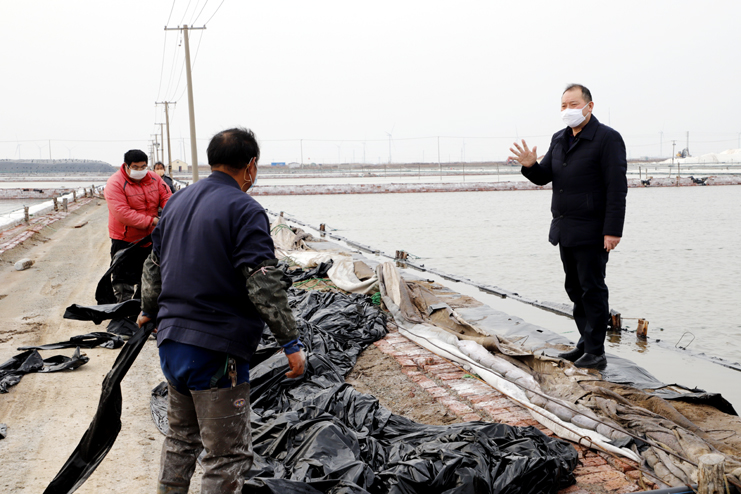 李國文首先來到日曬制鹽公司生產灘頭,現場察看復工復產情況。徒步灘頭,有的在補塑布、有的在修整廩基、有的在更換塑布,每個班組都在搶抓時間準備春扒工作。隨后李國文先后前往西旺養(yǎng)殖池塘、明威田頭、宵洋物流碼頭,每到一處都詳細詢問職工口罩、消毒酒精等防護物資夠不夠用,有沒有外地回來的員工,并叮囑員工少接觸外地回來人員,錯開上下班時間,外出要帶口罩,保護好自己才能更好的為企業(yè)創(chuàng)造效益。