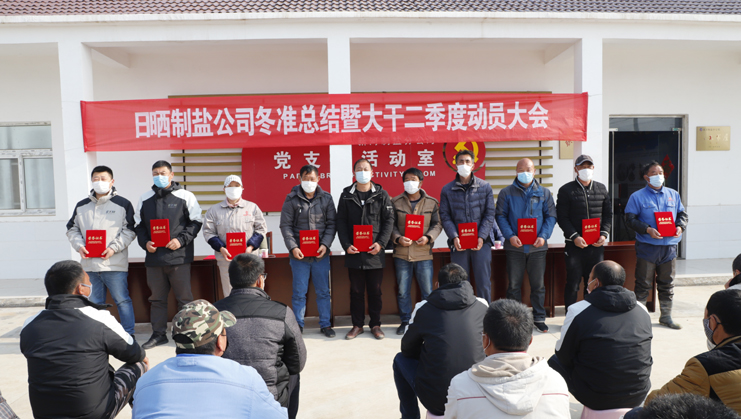 3月18日,日曬制鹽公司在新河制鹽分公司生產(chǎn)灘頭召開冬準(zhǔn)總結(jié)暨大干二季度動員大會,黨委書記、董事長、總經(jīng)理李國文主持會議并講話,為完成2020年各項生產(chǎn)工作再動員、再發(fā)力、再部署、再出發(fā),幫失去的時間搶抓回來。常務(wù)副總經(jīng)理古浩光對冬準(zhǔn)工作進(jìn)行了全面總結(jié),并對二季度工作進(jìn)行了安排部署。黨委副書記、紀(jì)委書記、工會主席王宏宣讀了冬準(zhǔn)勞動競賽表彰決定和大干二季度勞動競賽方案。