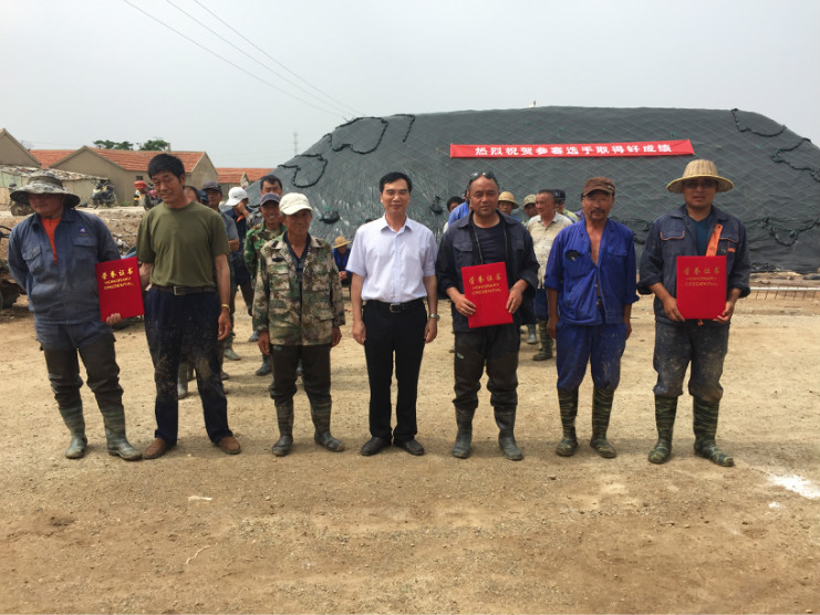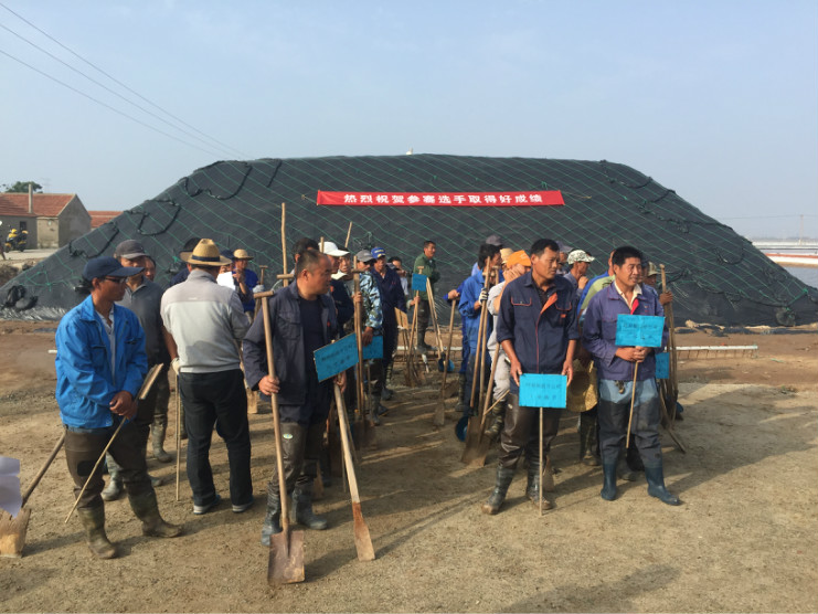 比賽開(kāi)始前,生產(chǎn)服務(wù)公司經(jīng)理王緒前首先就天溝建設(shè)要求、評(píng)分標(biāo)準(zhǔn)等事項(xiàng)進(jìn)行了現(xiàn)場(chǎng)說(shuō)明。7點(diǎn)20分,隨著裁判員的一聲令下,比賽正式開(kāi)始。參賽選手們按照賽前抓鬮序號(hào),迅速投入到比賽中。賽場(chǎng)上,每一組選手都分工明確,澆水、翻泥、踩實(shí)、做埝、整平一氣呵成,大家都表現(xiàn)的極為熟練,充分展示了參賽選手扎實(shí)的基本功。比賽中,三位裁判在比賽場(chǎng)地來(lái)回巡查,認(rèn)真記錄每一組參賽選手的勞動(dòng)過(guò)程,力求做到公平、公正。9點(diǎn)20分,隨著最后一組選手的工作完成,比賽正式結(jié)束。隨即,三位裁判又根據(jù)比賽過(guò)程中的記錄情況結(jié)合最終工程質(zhì)量對(duì)每一參賽小組進(jìn)行綜合評(píng)分。最終,來(lái)自埒南制鹽分公司的章保衛(wèi)、高明成榮獲比賽第一名;江海兵、張春連以及尹步松、汪禮兵兩組選手榮獲第二名;新河制鹽分公司朱明、戴繼明,郁雷敏、李正軍,楊春旭、史春海三組選手榮獲第三名。