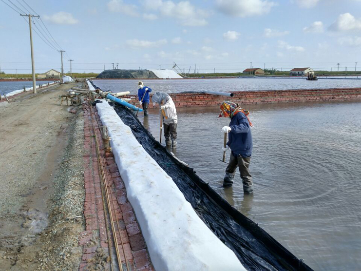 國(guó)慶假日前兩天的連天雨,讓大家好不容易盼來(lái)的七天長(zhǎng)假打了折扣,人們走親訪(fǎng)友出行旅游都帶來(lái)了不便,七十多毫米的降雨量也影響到了公司鹽業(yè)生產(chǎn),廣大員工堅(jiān)守崗位值好班。生產(chǎn)服務(wù)人員24小時(shí)觀(guān)察天氣狀況,跟蹤分析發(fā)布天氣預(yù)報(bào),指導(dǎo)生產(chǎn),各班組鹽工堅(jiān)守崗位,加強(qiáng)塑池管理,檢查排淡口門(mén),及時(shí)排出淡水。3號(hào)天氣轉(zhuǎn)好,廣大鹽工及時(shí)收布,整理塑池,轉(zhuǎn)換到正常生產(chǎn)管理中來(lái)。同時(shí),啟動(dòng)扒鹽工作,安裝機(jī)泵管道,調(diào)配扒鹽鹵水,嚴(yán)格執(zhí)行安全扒鹽操作規(guī)程,3日晚開(kāi)始投入到正常的扒鹽中來(lái)。鹽灘上勞作的鹽工在一條條潔白的鹽廩襯映下格外美麗。(季興勝)