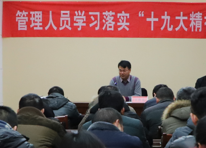 培訓(xùn)班上,公司黨委書(shū)記、董事長(zhǎng)王德志作開(kāi)班講話,他指出:公司黨委利用傳統(tǒng)的“冬閑”時(shí)間組織全體員工深入學(xué)習(xí)十九大精神,就是要讓大家在新的一年里,更好的用十九大精神指導(dǎo)工作。他強(qiáng)調(diào):深入貫徹落實(shí)黨的十九大精神對(duì)于國(guó)企來(lái)講,就是要“突出政治抓黨建,抓好黨建促經(jīng)濟(jì)”。全體員工要把講政治擺在首要位置,具體到工作落實(shí)上就是要做到上傳下達(dá)、政令暢通。依靠職工辦企業(yè),辦好企業(yè)為職工就是講政治,因此,我們工作首先要有目標(biāo),要很好的團(tuán)隊(duì),要有不斷獲取資源的能力,還要有先進(jìn)的組織架構(gòu)。這都要我們通過(guò)學(xué)習(xí),更新思想,提升水平。他要求,在此次培訓(xùn)中,參訓(xùn)人員要嚴(yán)肅學(xué)習(xí)培訓(xùn)紀(jì)律,確保取得良好成效,努力做到學(xué)以致用。