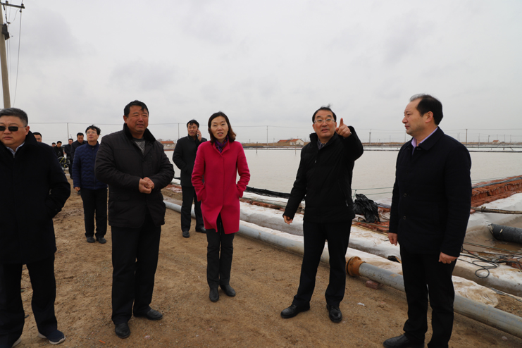 胡建明總經(jīng)理一行分別到原鈣液復(fù)曬區(qū)養(yǎng)殖池塘改造施工現(xiàn)場(chǎng)和新河制鹽分公司五班的扒鹽現(xiàn)場(chǎng)進(jìn)行實(shí)地調(diào)研,詳細(xì)了解工程的施工情況和日曬制鹽公司的生產(chǎn)情況。在原鈣液復(fù)曬區(qū),只見彩旗招展,幾臺(tái)挖掘機(jī)正在緊張施工之中,對(duì)灘地進(jìn)行養(yǎng)殖池塘改造,工程施工人員搶時(shí)間,抓進(jìn)度,爭(zhēng)取在養(yǎng)殖旺季來臨之時(shí),完成工程施工投入養(yǎng)殖生產(chǎn)。日曬制鹽公司目前已經(jīng)出動(dòng)五臺(tái)扒鹽機(jī)組投入到春季扒鹽工作中來,預(yù)計(jì)上半年將完成25萬(wàn)噸的扒鹽任務(wù)。隨后在機(jī)關(guān)三樓會(huì)議室召開流動(dòng)辦公會(huì),投資公司董事長(zhǎng)李國(guó)文對(duì)灌西投資公司和日曬制鹽公司的生產(chǎn)經(jīng)營(yíng)情況進(jìn)行了匯報(bào)。他表示,2018年,灌西投資公司將積極迎接挑戰(zhàn),以“三超兩增一確保”為工作目標(biāo),產(chǎn)鹽58萬(wàn)噸,實(shí)現(xiàn)綜合利潤(rùn)翻一番工作任務(wù)而努力奮斗。同時(shí)也提出,公司當(dāng)前面臨原料礦鹵要漲價(jià)、原鹽一線員工年齡老化、職工小區(qū)房產(chǎn)證協(xié)調(diào)辦理等諸多發(fā)展難題,希望集團(tuán)公司領(lǐng)導(dǎo)給予高度重視。集團(tuán)公司領(lǐng)導(dǎo)相繼發(fā)言,現(xiàn)場(chǎng)辦公,針對(duì)各類問題分別進(jìn)行了研討,提出建議,解決問題。