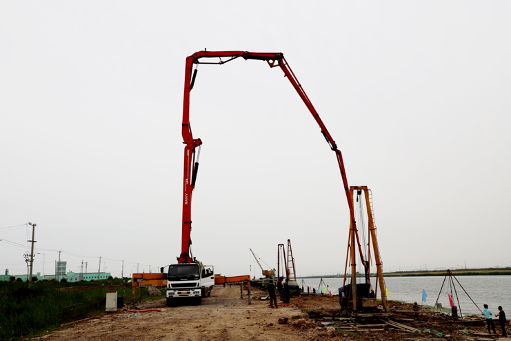 5月30日下午,藍(lán)色的天空沒(méi)有一絲云彩,火熱的太陽(yáng)炙烤著大地。在灌西投資公司五灌河碼頭擴(kuò)建項(xiàng)目建設(shè)工地,施工人員正在各司其職的工作著,有的在使用電鋸,有的在壓鋼筋,還有的在焊接鋼筋框架。遠(yuǎn)處一臺(tái)混凝土澆灌機(jī)在進(jìn)行混凝土澆灌作業(yè),碼頭岸邊大小打樁機(jī)器一字排開(kāi),筆者親身感受五灌河碼頭二期工地開(kāi)發(fā)建設(shè)的火熱場(chǎng)面。