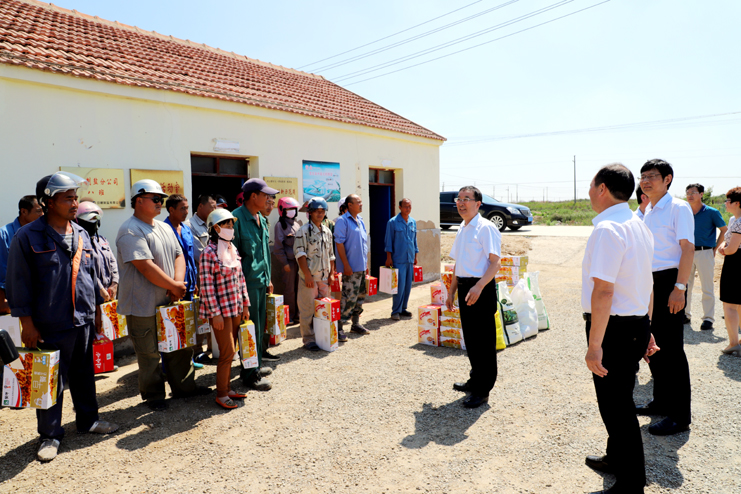 入伏以來,持續(xù)高溫,為確保一線生產(chǎn)單位工作順利開展,保證員工身體健康。7月18日上午,集團(tuán)公司總經(jīng)理胡建明、副總經(jīng)理張其海一行深入日曬制鹽公司走訪慰問一線職工,把綠豆、飲料等慰問品送到他們手中,在炎炎夏季,為一線職工送去集團(tuán)公司領(lǐng)導(dǎo)的深切關(guān)懷與陣陣清涼。