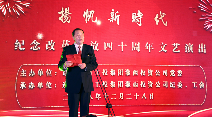 偉大變革,書(shū)寫(xiě)壯麗史詩(shī);永志不忘,奮進(jìn)復(fù)興征程。12月28日,灌西投資公司以“揚(yáng)帆新時(shí)代”為主題的慶祝改革開(kāi)放40周年文藝匯演在灌云縣臨港產(chǎn)業(yè)管委會(huì)報(bào)告大廳上演。工投集團(tuán)公司領(lǐng)導(dǎo)戴鴻鳴、汪群、劉承志等領(lǐng)導(dǎo)與職工群眾代表700余人共同欣賞了這臺(tái)振奮人心的視聽(tīng)盛宴。投資公司黨委書(shū)記、董事長(zhǎng)、總經(jīng)理李國(guó)文作了演出致辭。