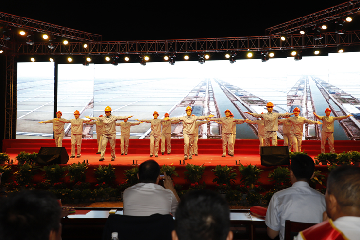 第一篇章“初心歲月”,一開場,大型舞蹈《紅紅火火大中華》便將人們的記憶帶回當年熱火朝天的建設(shè)歲月,我們的建設(shè)者們用激情、奉獻和擔當鑄就了一座座光輝四射的精神豐碑。隨后的小合唱《明天會更好》展望了日曬制鹽公司錦繡前程,站在新時代新起點,進一步解放思想,奮發(fā)圖強,不斷開創(chuàng)新業(yè)績,奪取新勝利。小品、淮海戲《拍蒼蠅》、《拽耳朵》等為公司黨風(fēng)廉政建設(shè)工作的深入開展而引吭高歌。日曬人初心不改,奮斗不止,勇于擔當、主動作為,走出繁榮和歡樂,留下拼搏奉獻的風(fēng)采。