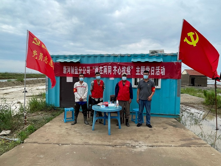 新河制鹽分公司根據(jù)投資公司黨委安排,在零班二期設(shè)立卡點,嚴格落實領(lǐng)導干部24小時帶班、值班和疫情突發(fā)狀況報告等制度,支部亮旗、黨員亮徽、職工亮力,共同織就公司疫情防控網(wǎng)。一個支部就是一座堡壘,一名黨員就是一面旗幟,全公司黨員紛紛亮出身份,主動請纓,沖鋒在前,放棄假期積極投身最需要的地方,用行動踐行初心使命,全力打好這場疫情防控阻擊戰(zhàn)?。ㄐ潞狱h支部)