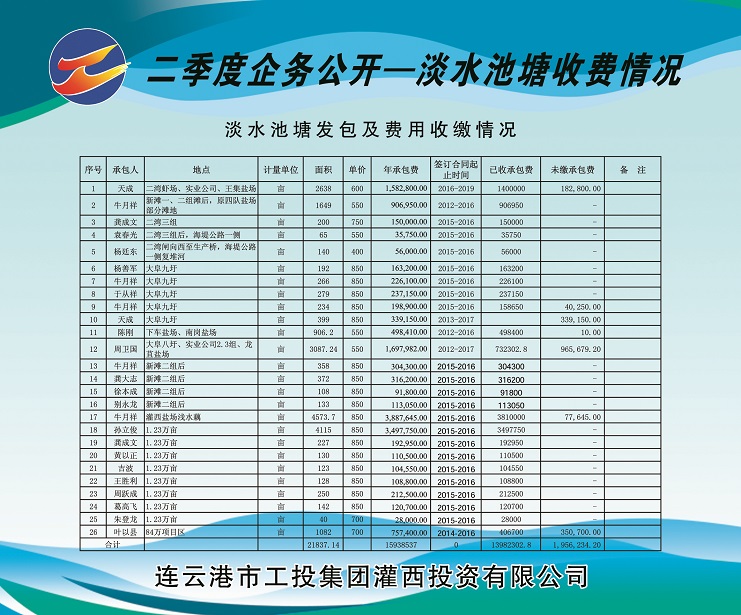 二、海淡水養(yǎng)殖池塘承包費收繳情況