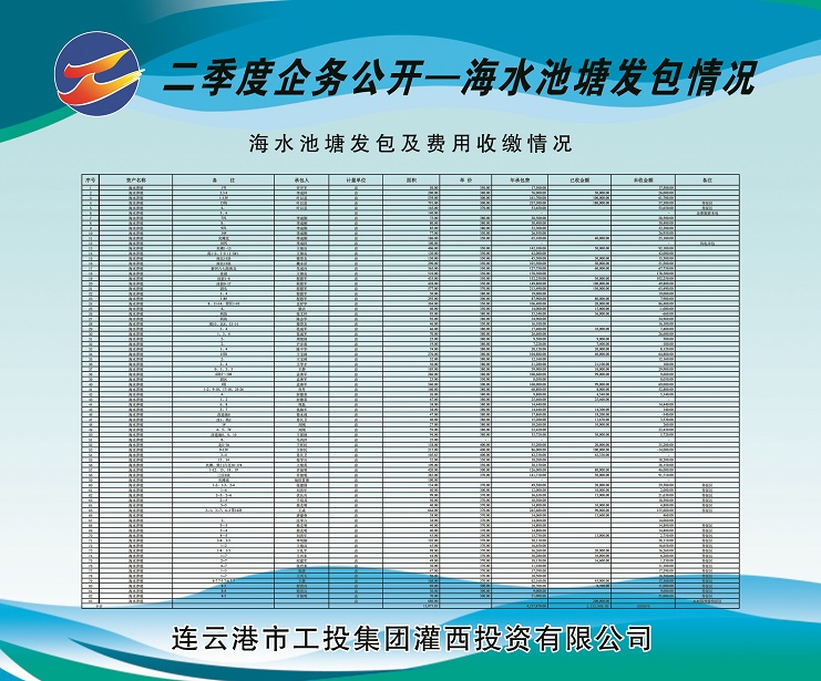 2、海水養(yǎng)殖池塘發(fā)包及費用收繳情況。共發(fā)包海水養(yǎng)殖池塘面積13073.83畝,應收租賃費421.787萬元,已收租賃費221.39萬元,欠收租賃費200.397萬元,收繳率為52%。