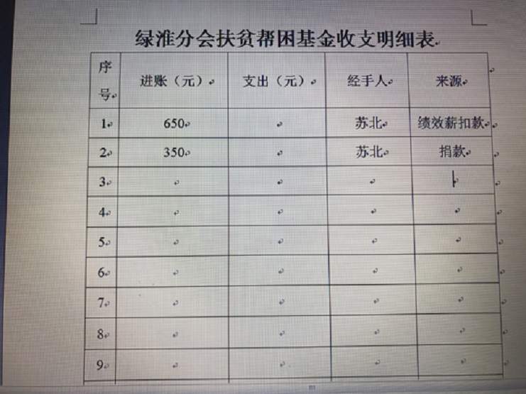7月27日,綠淮公司出納將1000元現(xiàn)金匯入專有賬戶,標(biāo)志著分會(huì)成功引入第一筆扶貧基金。 據(jù)了解,綠淮扶貧基金由員工當(dāng)月扣罰的績(jī)效薪以及自愿捐款、募捐等形成組成的一項(xiàng)專項(xiàng)資金,主要用于深入開(kāi)展“雙進(jìn)雙促”,力所能及地幫扶特困戶、困難戶,做好職工的貼心人,為早日實(shí)現(xiàn)魅力灌西添磚加瓦。(蘇北)