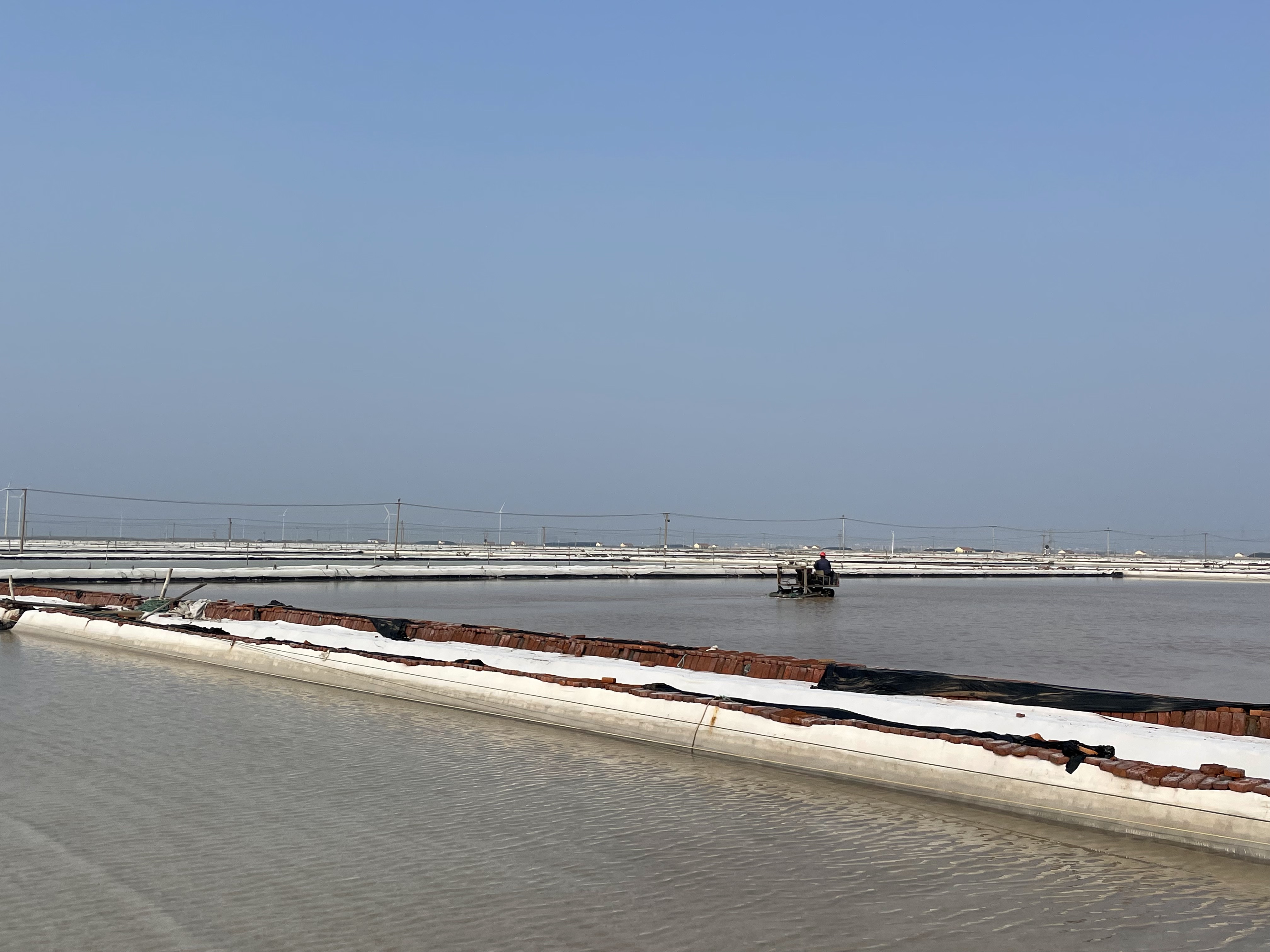 勞動創(chuàng)造幸福,實干成就偉業(yè)。五一國際勞動節(jié)期間天氣變化頻繁,雨水、大風(fēng)等天氣對原鹽生產(chǎn)有著極大的影響。為保障原鹽品質(zhì),埒南制鹽的員工們密切關(guān)注天氣變化,雨天前夕加班加點為鹽廩蓋上黑色防水膜,為池鹽蓋上塑布,以便晴天繼續(xù)正常開展春季扒鹽工作。雨水來臨前,該公司提前研判并啟動應(yīng)急預(yù)案,合理安排扒鹽機組收工,檢查排洪涵閘,保障安全生產(chǎn)。目前已完成扒鹽格塊156塊,9.5萬噸。
