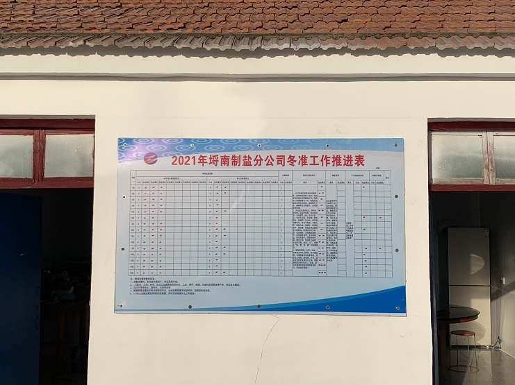 冬季是日曬制鹽收儲鹵水、扒土塘、整理灘場文明的最佳時期,也是為2022年工作起好頭、邁好步的關(guān)鍵時期,為更好落實“冬準(zhǔn)”大會會議精神,12月6日上午,埒南制鹽公司制定冬準(zhǔn)工作推進表,張貼在公司辦公區(qū)域墻面上,成立“指揮部”掛圖作戰(zhàn),打好冬準(zhǔn)戰(zhàn)役促。