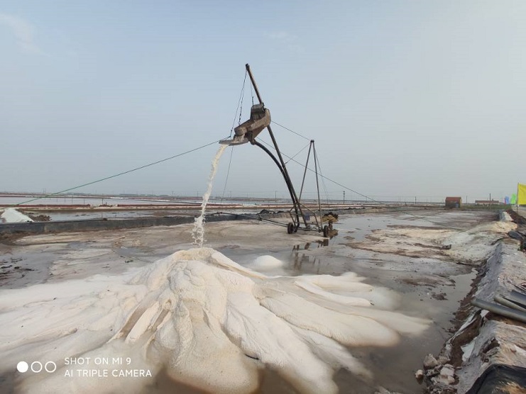9月16日,在喜慶的鞭炮聲中,新河制鹽分公司四臺扒鹽機組全部開機扒鹽,一年一度的秋扒工作正式開始。