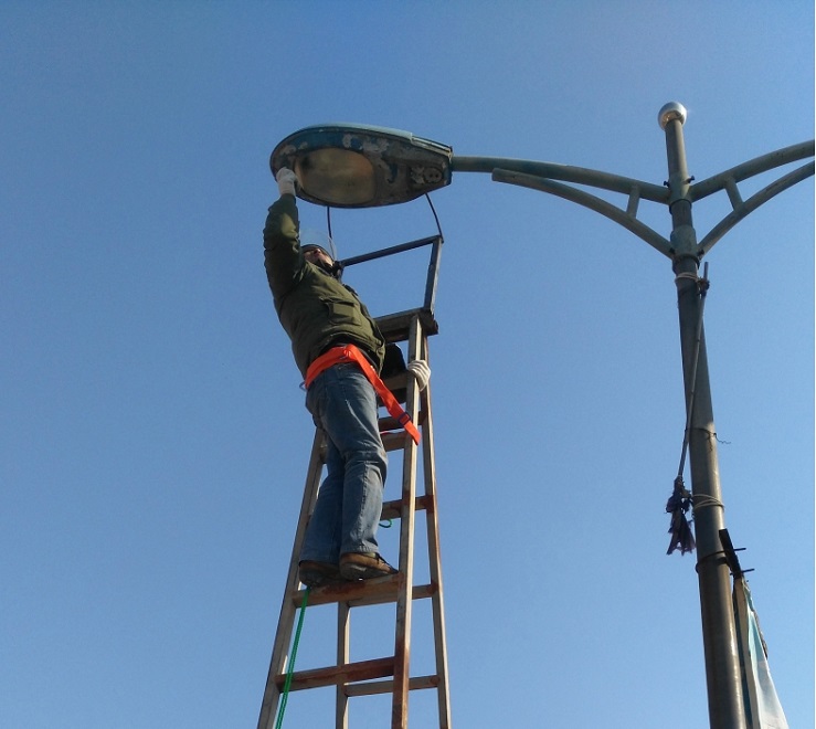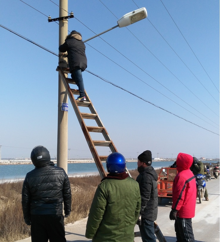 為增添節(jié)日氣氛,亮化場(chǎng)區(qū),機(jī)械設(shè)備服務(wù)中心接到場(chǎng)區(qū)及日曬鹽道路路燈維修任務(wù)后,班子成員高度重視,認(rèn)真組織,積極籌備維修配件,并結(jié)合天氣形勢(shì),對(duì)需要修理的60盞路燈,采取分段實(shí)施的辦法,于1月25日開始,他們本著安全第一的原則,搶時(shí)間爭速度,對(duì)日曬鹽道路路燈展開維修工作,繼而對(duì)場(chǎng)區(qū)中二圩街道路燈進(jìn)行維修,職工們不畏嚴(yán)寒,加班加點(diǎn),到1月31日將全部路燈維修結(jié)束。(圖為修理現(xiàn)場(chǎng))