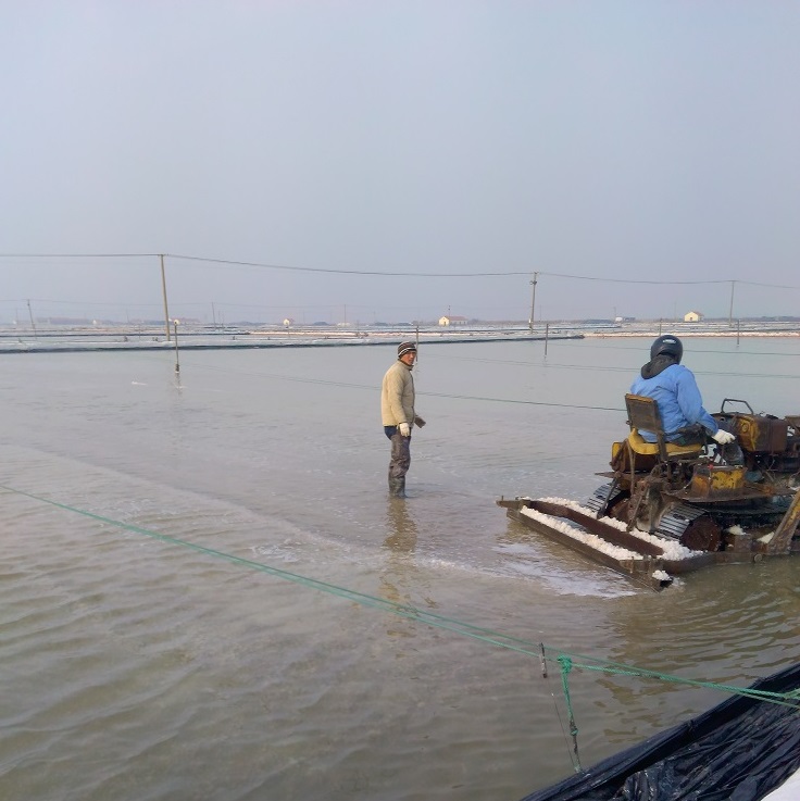 埒南制鹽分公司抓緊做好池鹽破碴工作,為即將開(kāi)始的春季扒鹽作好準(zhǔn)備,利用5臺(tái)唐30對(duì)去年下半年未參加扒鹽的格塊進(jìn)行機(jī)械破碴,目前已經(jīng)破碴70%以上。圖為職工利用唐30在池內(nèi)破碴。(埒宣)